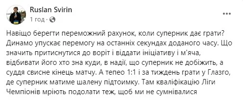 Зірка спортивних телеефірів Руслан Свірін має претензії до гри на утримання рахунку.
