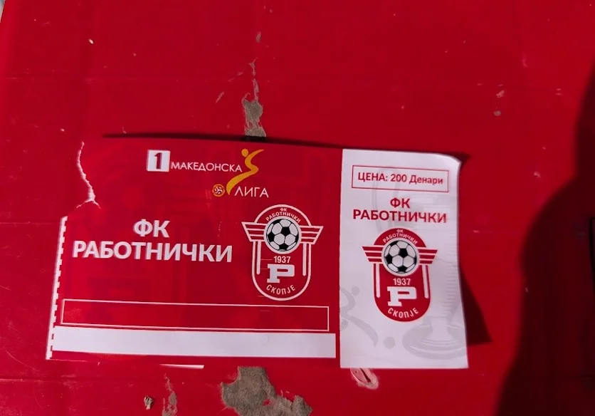 Дізнався, що у день мого приїзду до Скоп’є на Національному стадіоні відбудеться матч між Работнічкі та Арсімі. На жаль, квитків онлайн купити неможливо – їх просто нема. Але виявилося, що тікетів у такому форматі не існує в принципі. У Північній Македонії все по-олдовому – чоловік на вході до однієї з трибун продає паперові перепустки. Ціна – 200 денарів (160 гривень). А біля нього стоїть його колега зі снеками та напоями. Місцеве пиво – 100 денарів (80 гривень), на смак – як "Львівське".