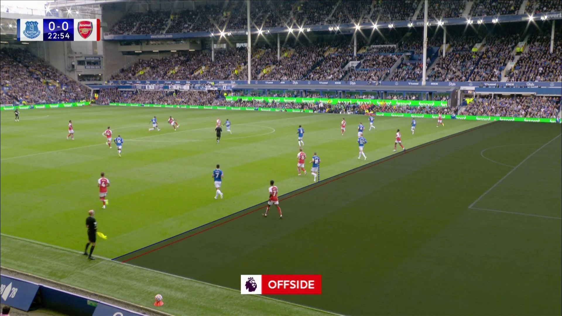Затяжні атаки не доходили до ударів, контроль був стерильним. У першому таймі гості тричі вдарили по чужих воротах. Вдалося спіймати Евертон на втраті концентрації та забити, однак арбітри скасували той гол Мартінеллі через офсайд. Міряли по Миколенку.