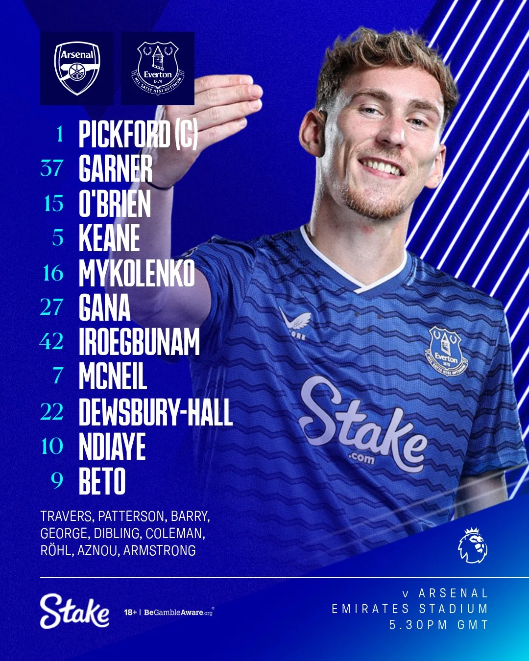Евертон: Пікфорд, Гарнер, О'Брайєн, Кін, Миколенко, Гуйє, Іроєгбунам, Макнілл, Дьюсбері-Хол, Ндіає, Бету.
