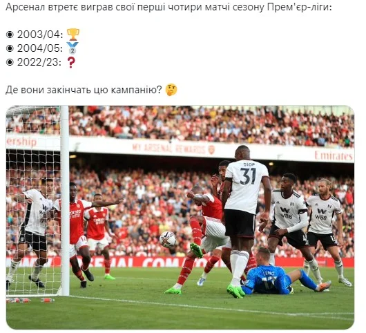 Мартінеллі крутив у дальній, захисник вчасно підставив голову і підправив удар. Подача з кута поля, Лєно випустив м'яч у повітрі, Габріель з допомогою Саліба забив таки, але VAR вирішив перевірити, чи не було руки. Зараховують гол – 2:1 на 87 хвилині. Чалоба після навісу Ріда зі стандарту не зміг пробити Ремсдейла. Шалені емоції воротаря Арсенала говорять самі за себе. Ця перемога в лондонському дербі дає змогу втримати лідерство. Команда Артети залишається єдиною з максимумом очок. Фулхем зазнає першої поразки після поверненя в еліту та опускається на 11 рядок. Арсенал досягає знакового успіху. Інші сезони АПЛ, коли вдавалося стартувати з 4 перемог поспіль, закінчувалися золотом і сріблом – ще в золоті часи Арсена Венгера.