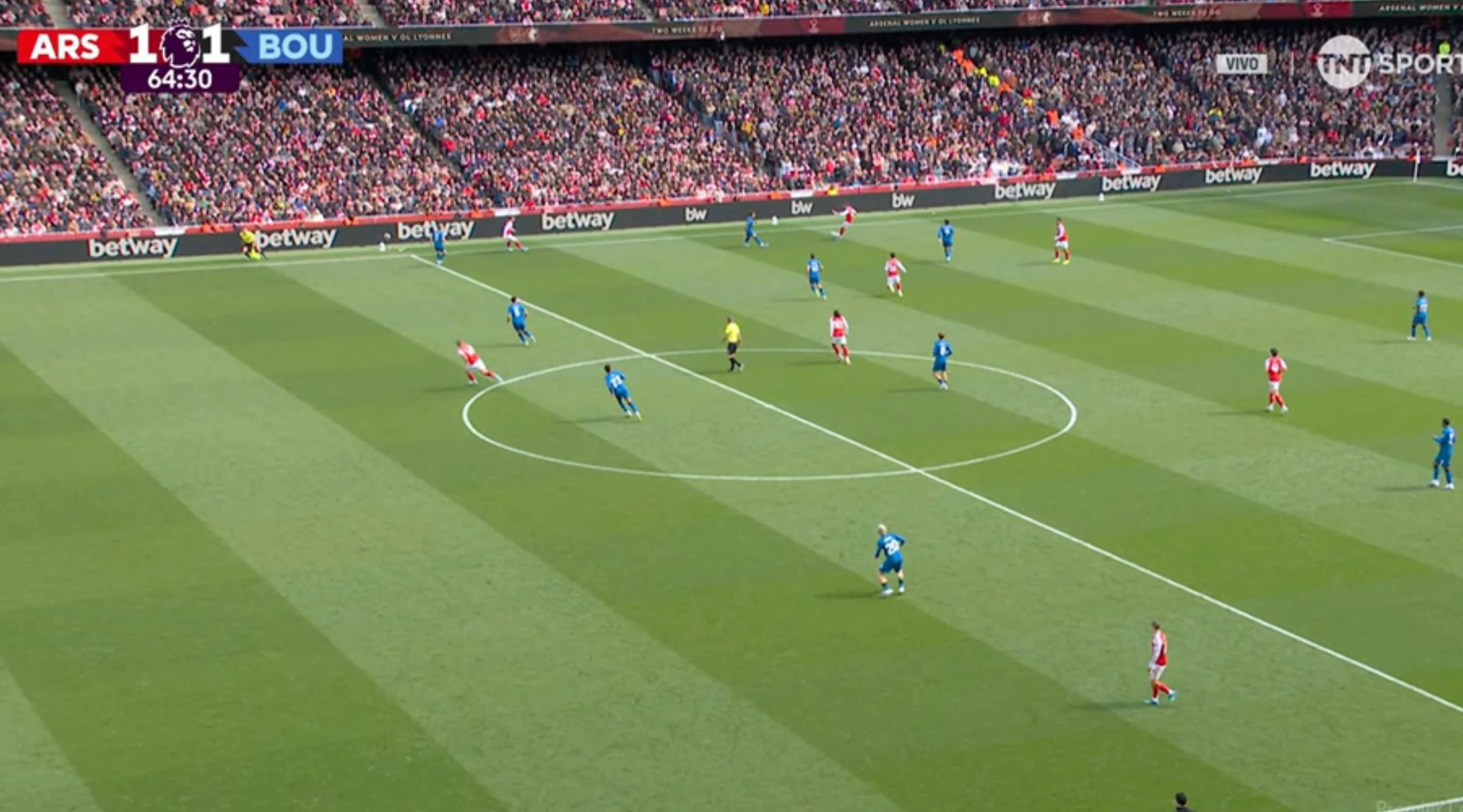Здавалося, що "гармаші" притиснуть "вишень", але нічого подібного не сталося. Арсенал взагалі нічого не створив, хоча й Борнмуту нічого не дозволив. Команди відправились відпочивати за рахунку 1:1. На початку другого тайму картина не змінилась, тож Мікель Артета провів потрійну заміну в атаці – Доуман, Езе й Троссар вийшли замість Хаверца, Мартінеллі й Мадуеке.