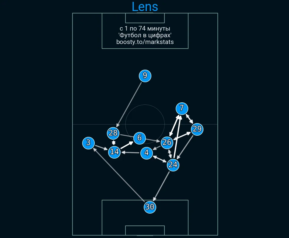 Ланс при роботі на чужій третині поля намагався накривати Арсенал доволі сміливим пресингом. Аж надто ефективним його не назвати, але час від часу лондонці стикались із проблемами. Коли ж гості долали цей тиск, то французи падали в низький блок в схемі 5-3-2.