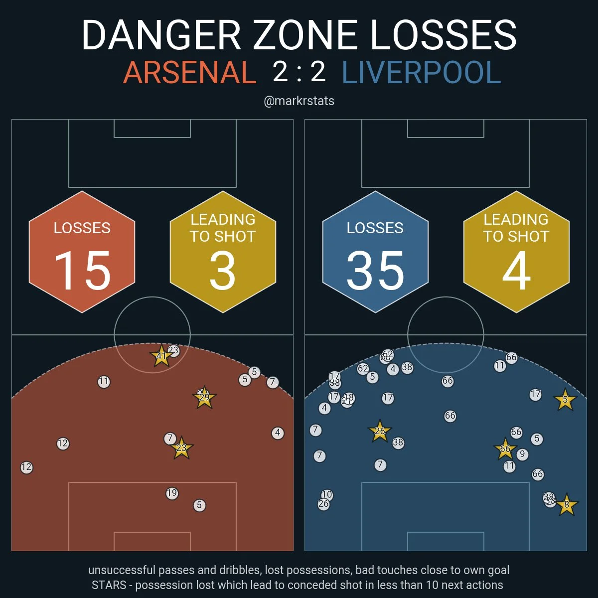 Показовою була і кількість втрат в радіусі 40 метрів від воріт. І їхнє розташування на полі. Арсенал душив Ліверпуль а всій глибині.