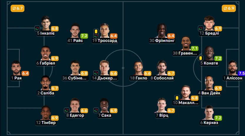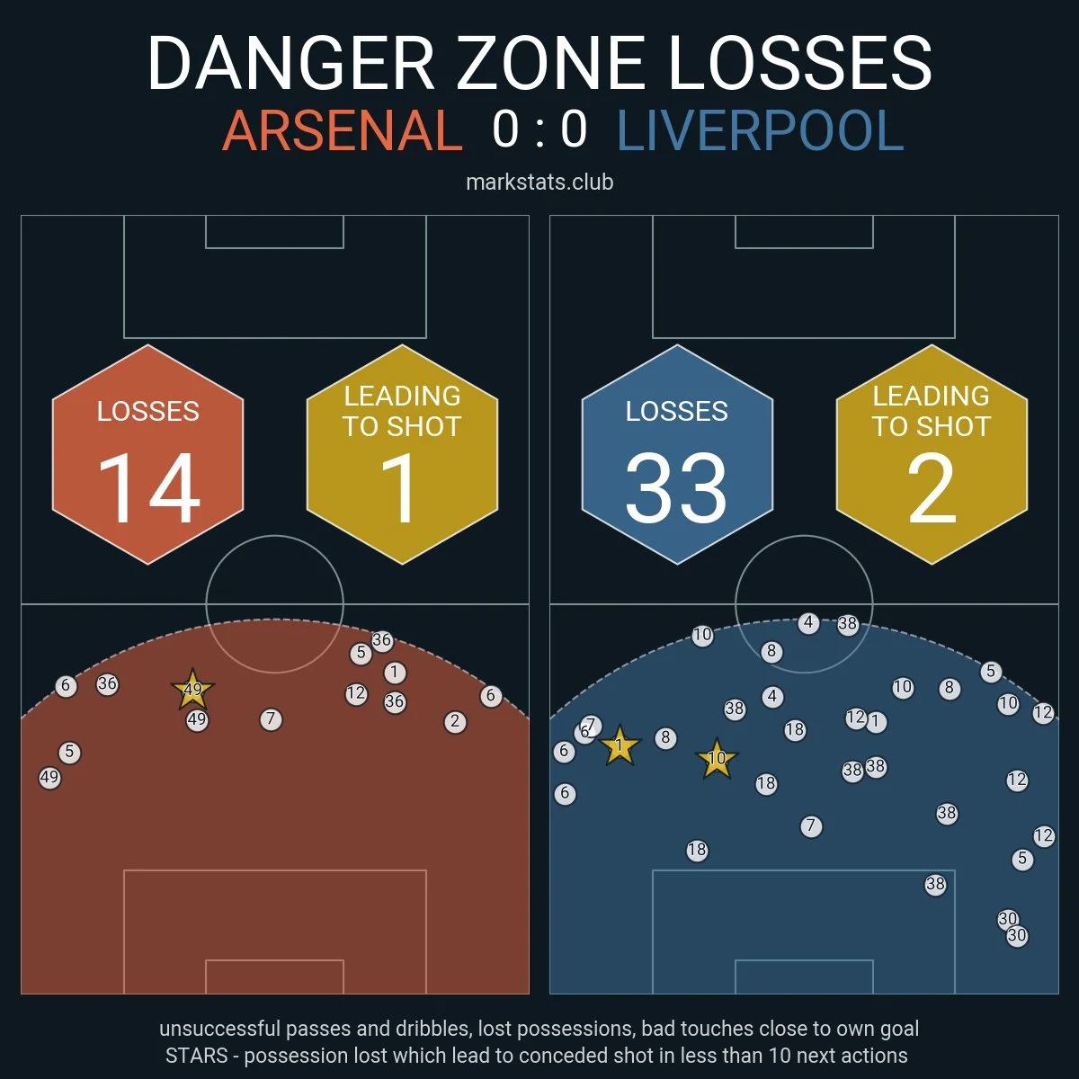 Із позитиву в грі Арсенала слід відзначити тільки шалену перевагу в контрпресингу. Майже всі підбирання залишалися за підопічними Мікеля Артети. Хоч з гри, хоч після стандартів. Північні лондонці по-чемпіонськи задушили контргру Ліверпуля – це єдине, що було чемпіонським у футболі господарів.