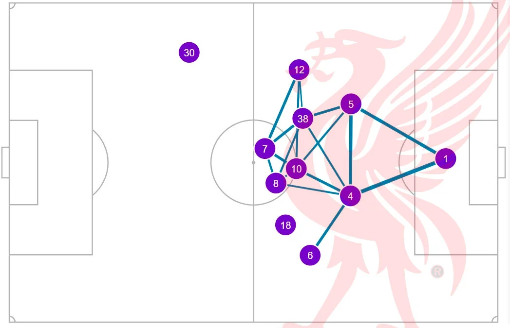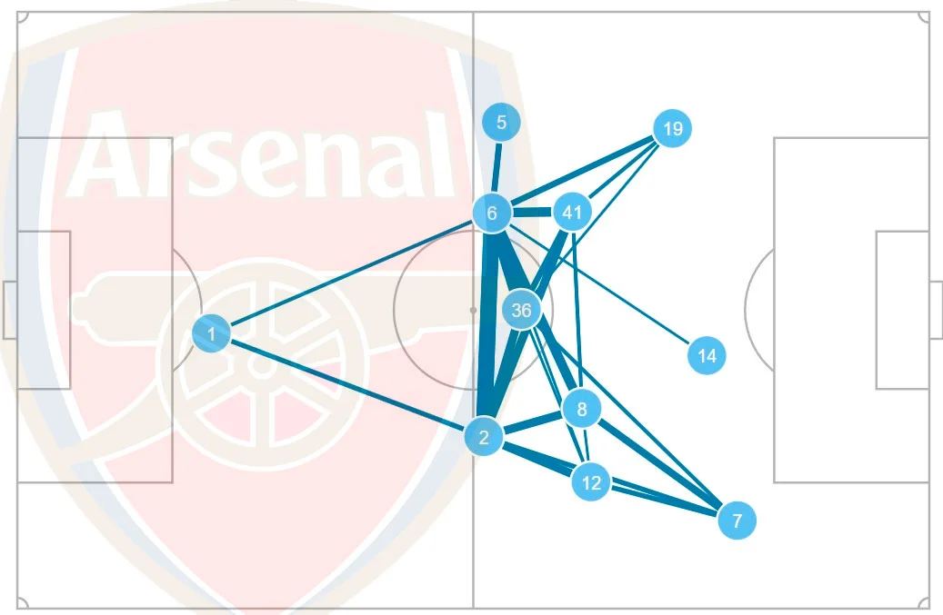 Занадто вже добре закрився Ліверпуль. Гості віддали ініціативу, що помітно навіть по карті передач. На третині поля "канонірів" колективи відбігали лишень 14% часу, тоді як в центрі та на третині мерсисайдців – 42% і 44% відповідно.