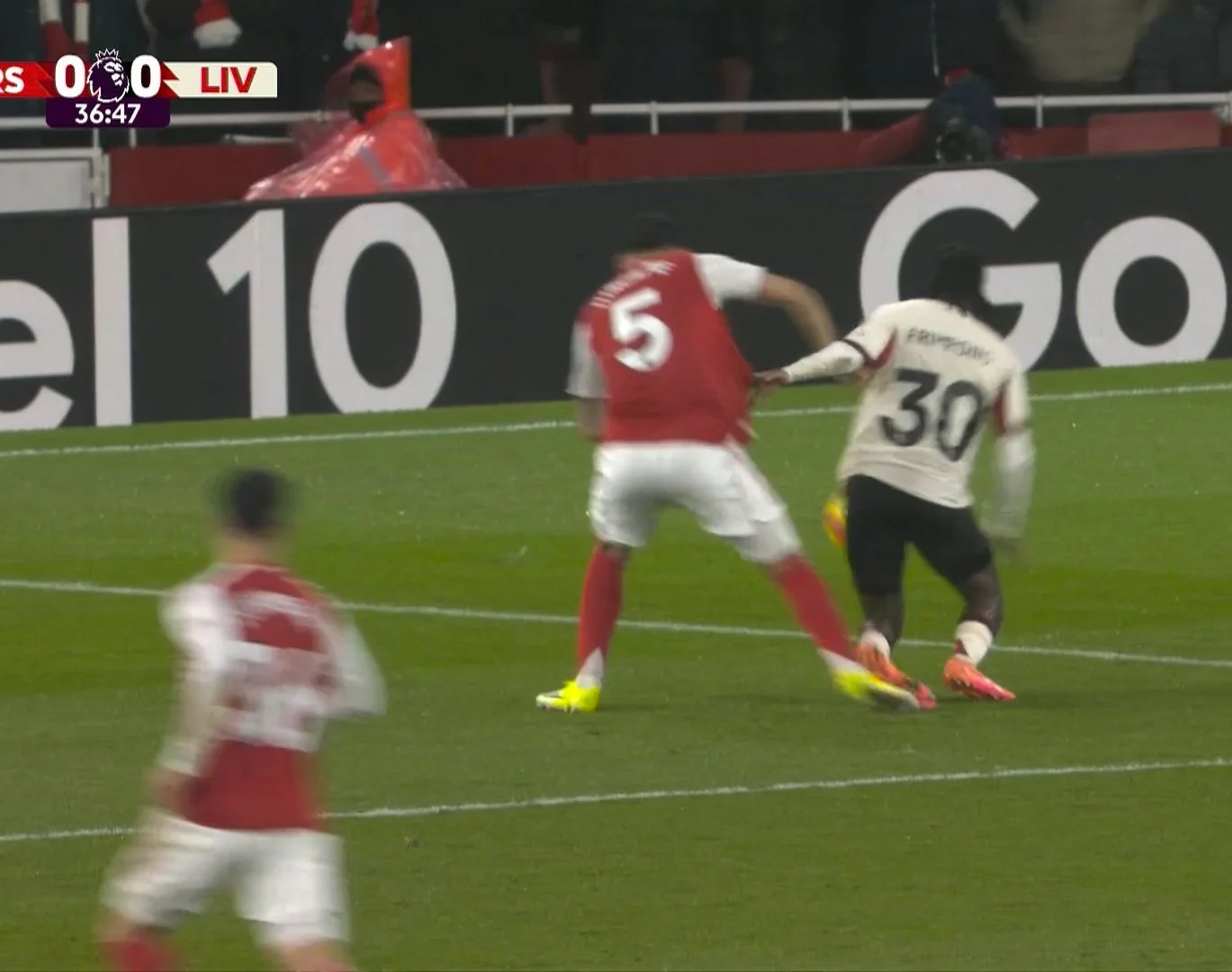 Арсенал же намагався розхитати низький блок Ліверпуля купою коротких перепасовок і переміщень, знайшовши вразливість у зоні Керкеза. "Каноніри" заплітали ефектні комбінації з виведенням Тімбера на простір під подальший крос, або ж пробували прориватись самі. Зокрема, Сака на 18-й хвилині обіграв Керкеза й Макаллістера, після чого виконав катбек на 11 метрів. Замиканню не дав статися Вірц.