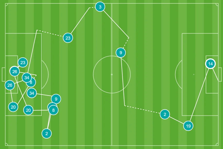 В обороні до Менді значно більше претензій. Перш за все, варто зазначити, що в обох голах Арсенала він зіграв непереконливо, пасивно спостерігаючи за подачею Пепе при першому й допустивши уникнення офсайду Обамеянгом при другому – так, він був зосереджений на Пепе, який був готовий вриватися з глибини, а Гарсія неправильно висмикнувся, але по факту маємо неструнку лінію з карманом під вихід П'єра-Емеріка віч-на-віч.