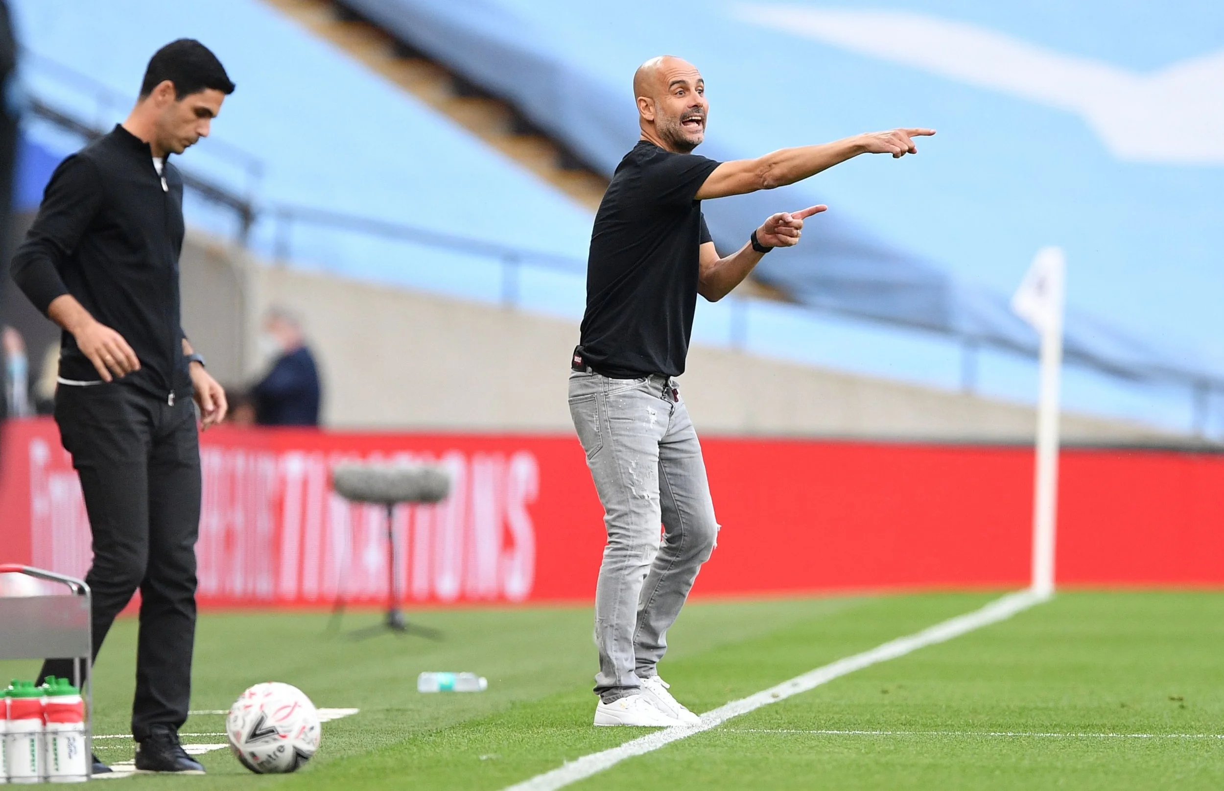 Манчестер Сіті вийшов з підтрибунки раніше за Арсенал, а з початком другого тайму відверто захопив ініціативу. Заведеність "містян" призвела до моменту вже на 49-й хвилині, коли Де Брюйне дочекався вмикання Стерлінга й викотив йому передачу в центр штрафного – Рахім пробив повз праву стійку! На 52-й у дотик з лівого флангу в руки Мартінесу вистрілив Менді, а на 55-й Марез у фірмовому стилі змістився в центр карного майданчика та завдав удару в ближній кут – Мартінес спіймав м'яч. На 62-й вже й Еміліано не міг врятувати Арсенал, але класний удар де Брюйне зі штрафного пролетів повз ліву стійку. І це ще ми не згадуємо про низку кутових та контроверсійне падіння Стерлінга біля воріт "канонірів" на 65-й – VAR замість пенальті призначив кутовий.