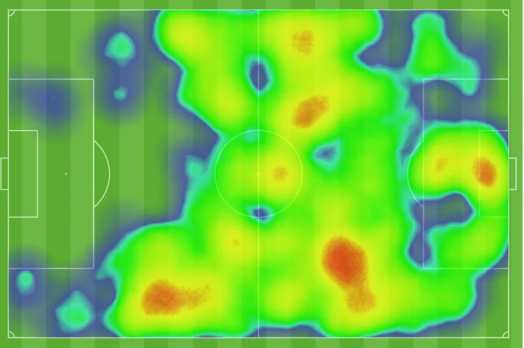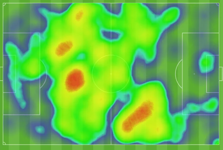З іншого боку, Манчестер виявився занадто обережним – підчищати перед штрафним не цурався і Бруну Фернандеш, а спіймати гостей на контрі не вдавалося через небажання Аморіма розкриватись. Саме тому теплова карта Арсенала до перерви не набагато краща за манкуніанську.
