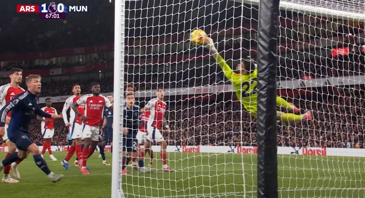 Втім, у МЮ теж були свої нагоди – і теж зі стандартів. Так, на 67-й хвилині Де Лігт замикав подачу Бруну, спрямовуючи м'яч у дальню дев'ятку, але Рая виконав карколомний сейв.