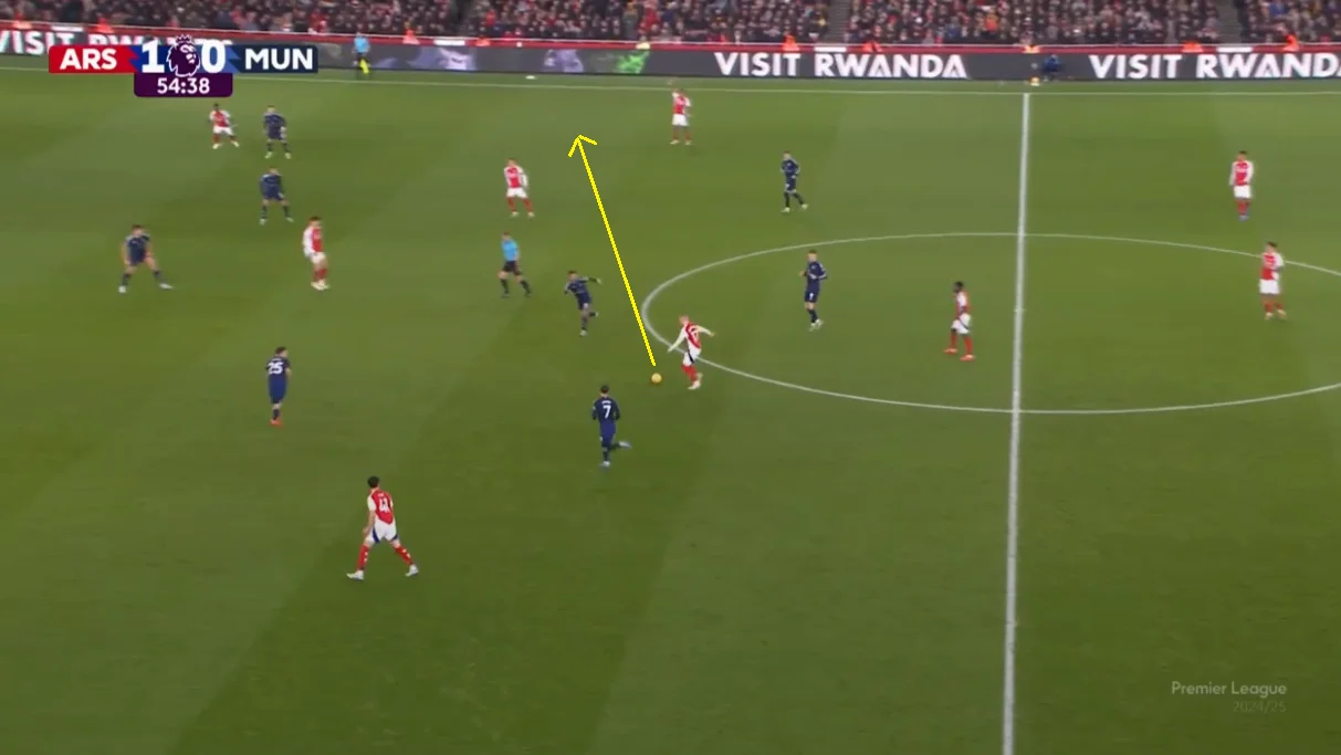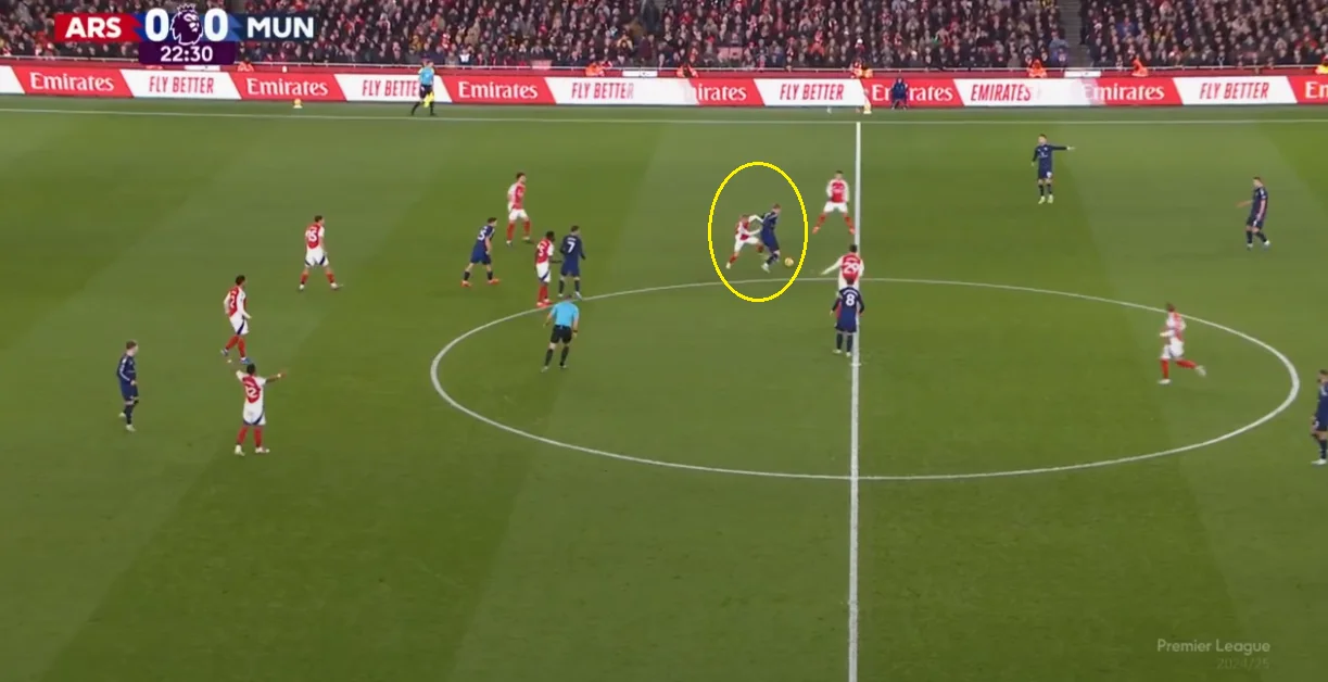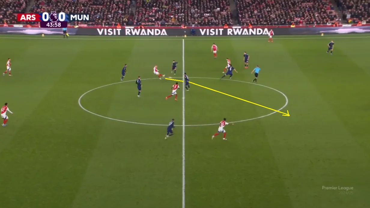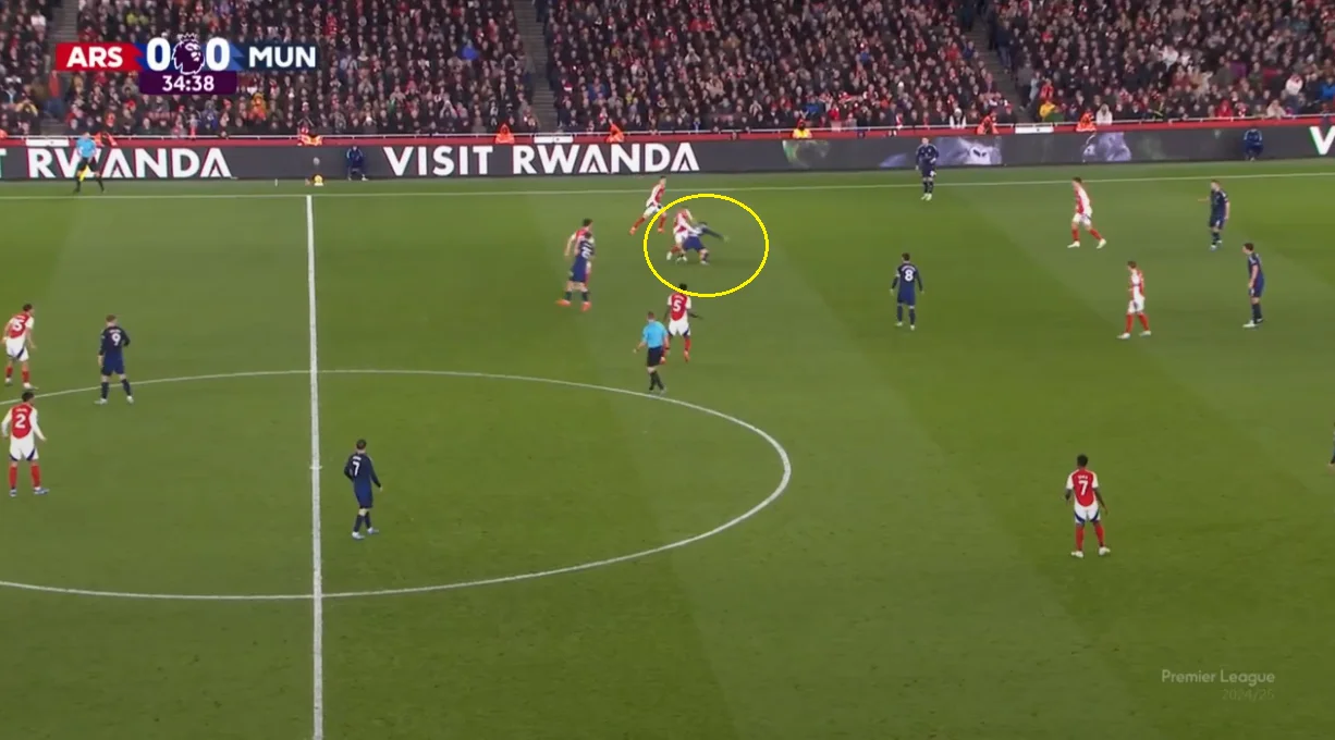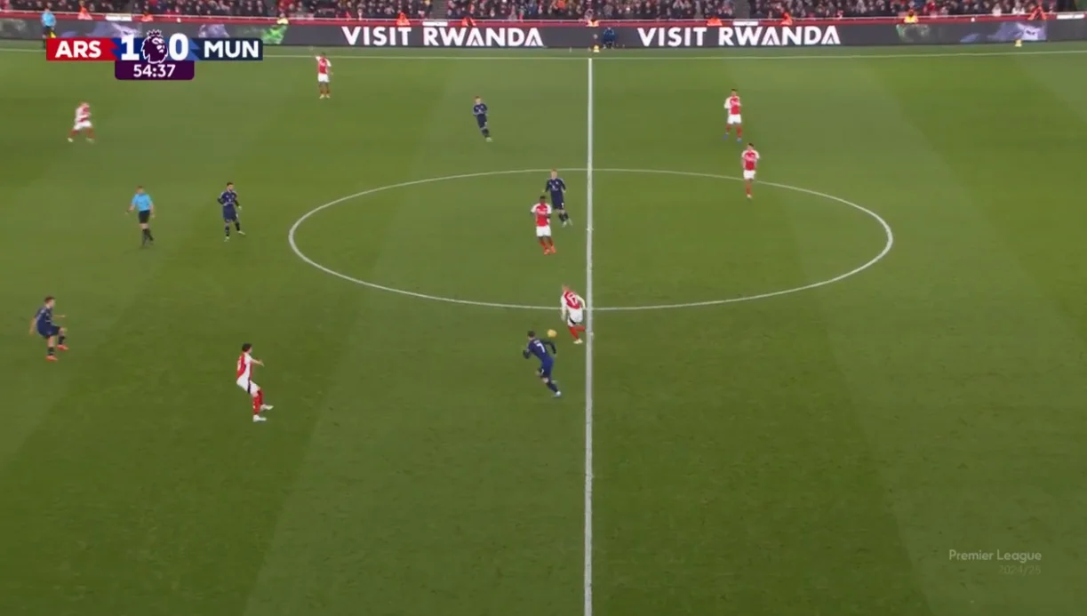 Помітно, що Рубен Аморім на даному етапі роботи намагається обмежити кількість втрат. На Емірейтс це досягалося вкрай обережними володіннями – настільки обережними, що перший дотик до м'яча у штрафному "дияволи" провели на 41-й хвилині.