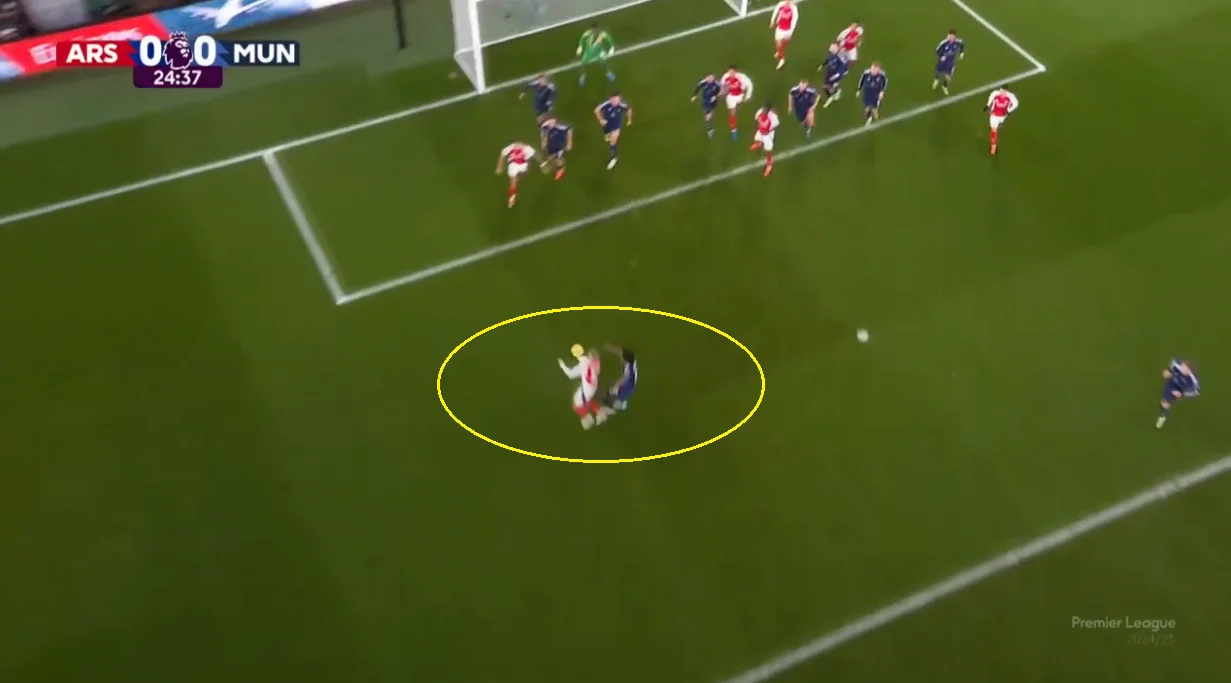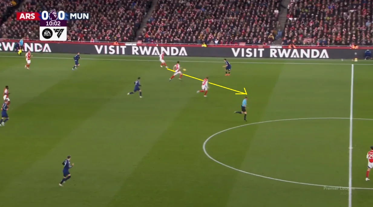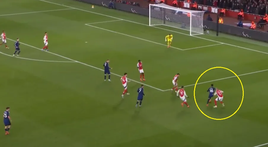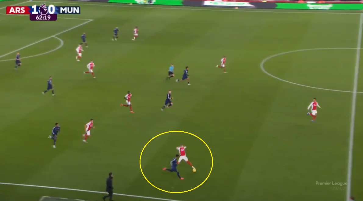 Та і жовта картка в принципі стала вірним тактичним рішенням. Хоча Амад дійсно становив проблему для Зінченка. Він був швидшим і більш різким, атакував на прийомі й демонстрував вибухові ривки. Мікель Артета вчасно помітив проблему, зняв українця й перевів ліворуч Тімбера.