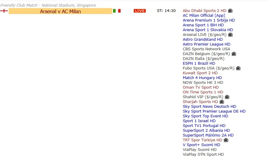 Де дивитися матч Арсенал – Мілан онлайн? Гру транслюють канали, з якими можна ознайомитися на скріні нижче.