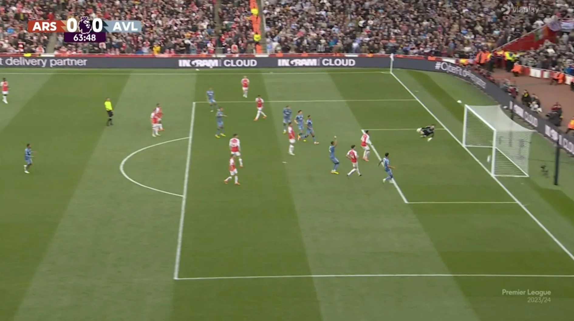 Втім, Астон Вілла теж могла забивати, причому вже на 2-й хвилині. Макгінн виграв підбирання після виносу головою від Зінченка, після чого пробив у голову Троссару. М'яч відскочив на правий край штрафного, а Воткінс звідти завдав удару головою – і ледь не перекинув Райю! На 39-й же Габріел налякав Емірейтс, вибивши м'яч у спину Зінченку й спричинивши контрвипад. Воткінс завершив його ударом, поціливши у дальню стійку!