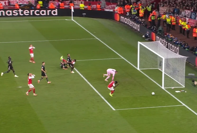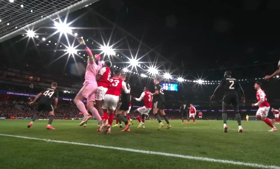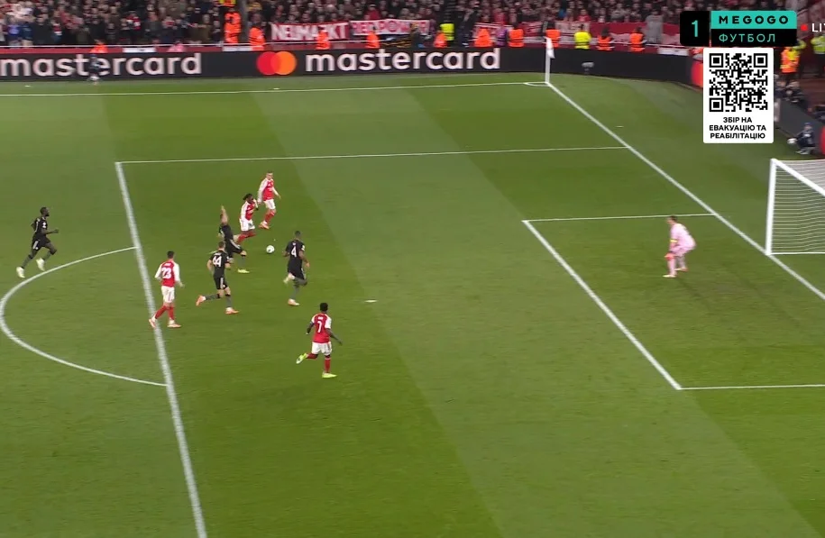 Арсеналу, звісно ж, допоміг кутовий, який розіграли в стилі Ніколя Жовера. "Каноніри" змістилися по лінії воротарського в напрямку ближньої стійки, куди й пішла подача – а Тімбер по ходу свого руху ще й прихопив Ноєра, збивши голкіперу темп. І він зробив це ще до навісу!