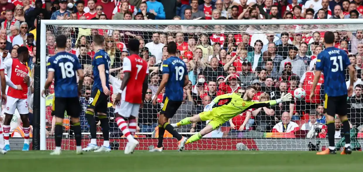 На 24-й хвилині господарям знов пощастило – поперечина взяла на себе удар Далота метрів із 17-ти. Арсенал відповів потужно: на 25-й хвилині Нкетія вискочив віч-на-віч і пробив по центру (Де Хеа виручив МЮ), а на 27-й Едді забив гол – він підхопив відскок після комбінації Едегора та Сака, розстрілявши ворота з близької відстані. Щоправда, рахунок довгий час не змінювався, адже VAR перевіряв епізод на офсайд. Офсайд знайшли, але в цьому ж епізоді помітили грубий фол Теллеса проти Сака. Пас йшов саме на Букайо, тож Крейг Поусон призначив пенальті. Саме же Сака його і реалізував – 2:0!