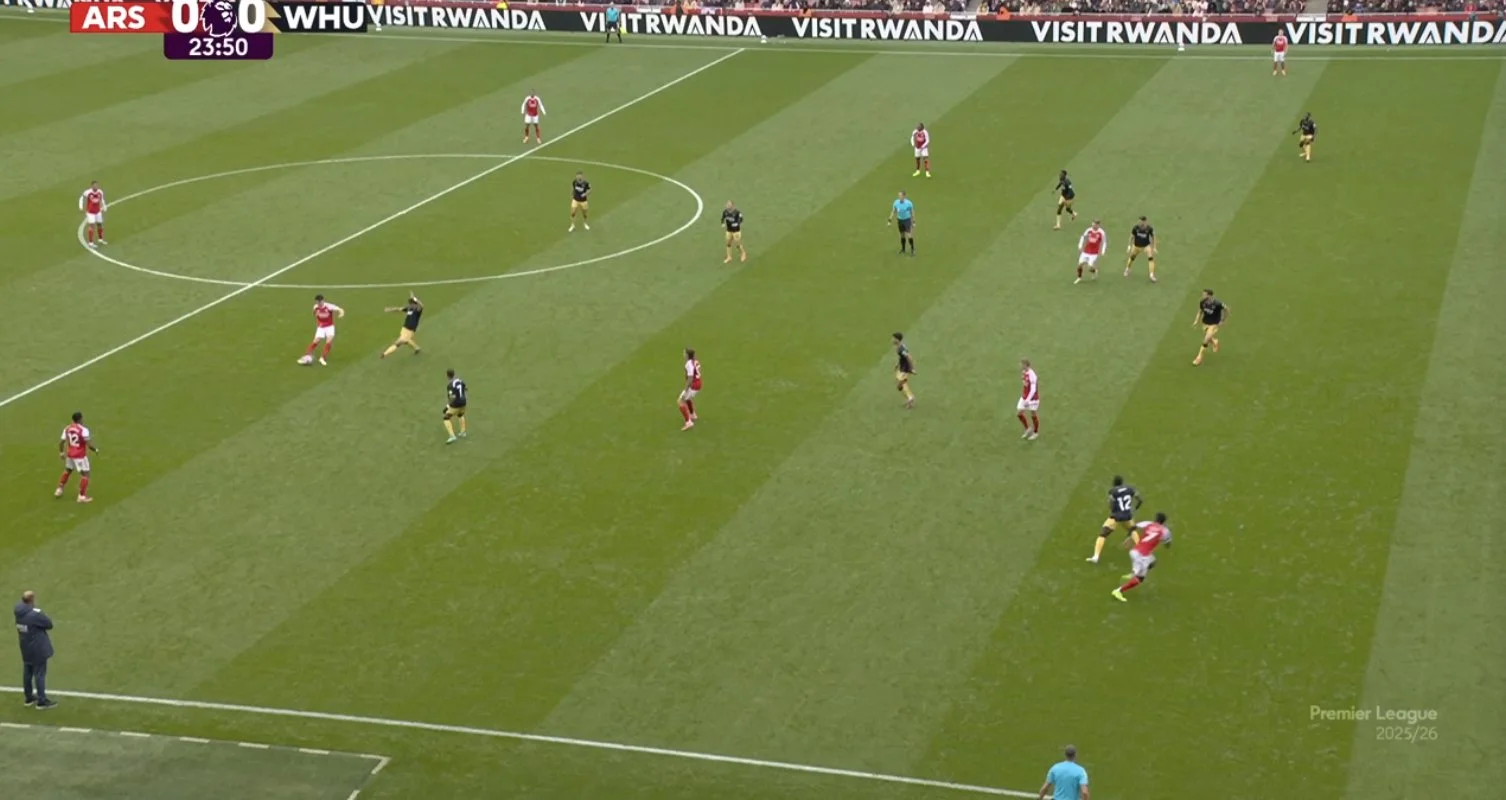 Арсенал надзвичайно спокійно розібрався з Вест Хемом, хоча міг пропускати вже на 1-й хвилині. Фюллькруг замикав подачу з кутового, скориставшись помилкою Райї на виході, однак м'яч полетів у небо. Цей удар став першим із чотирьох, проведених "молотобійцями" на Емірейтс. Він потягнув на 0,33 xG, а всього гості награли на 0,49.