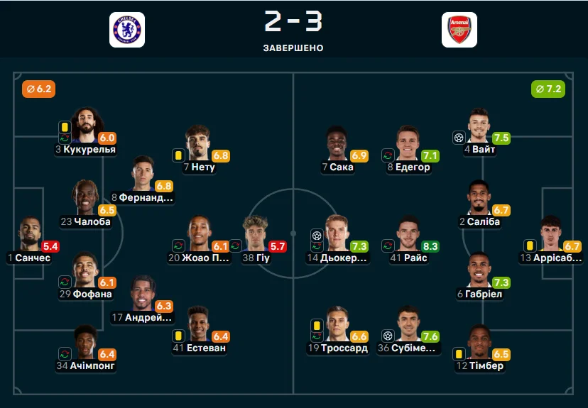 Але на більше Челсі не вистачило. У компенсований час Сака міг ще й пенальті заробити, однак "синіх" врятував офсайд. Зрештою, фінальний свисток зафіксував перемогу Арсенала з рахунком 3:2 – тепер все вирішуватиметься в матчі-відповіді на Емірейтс.