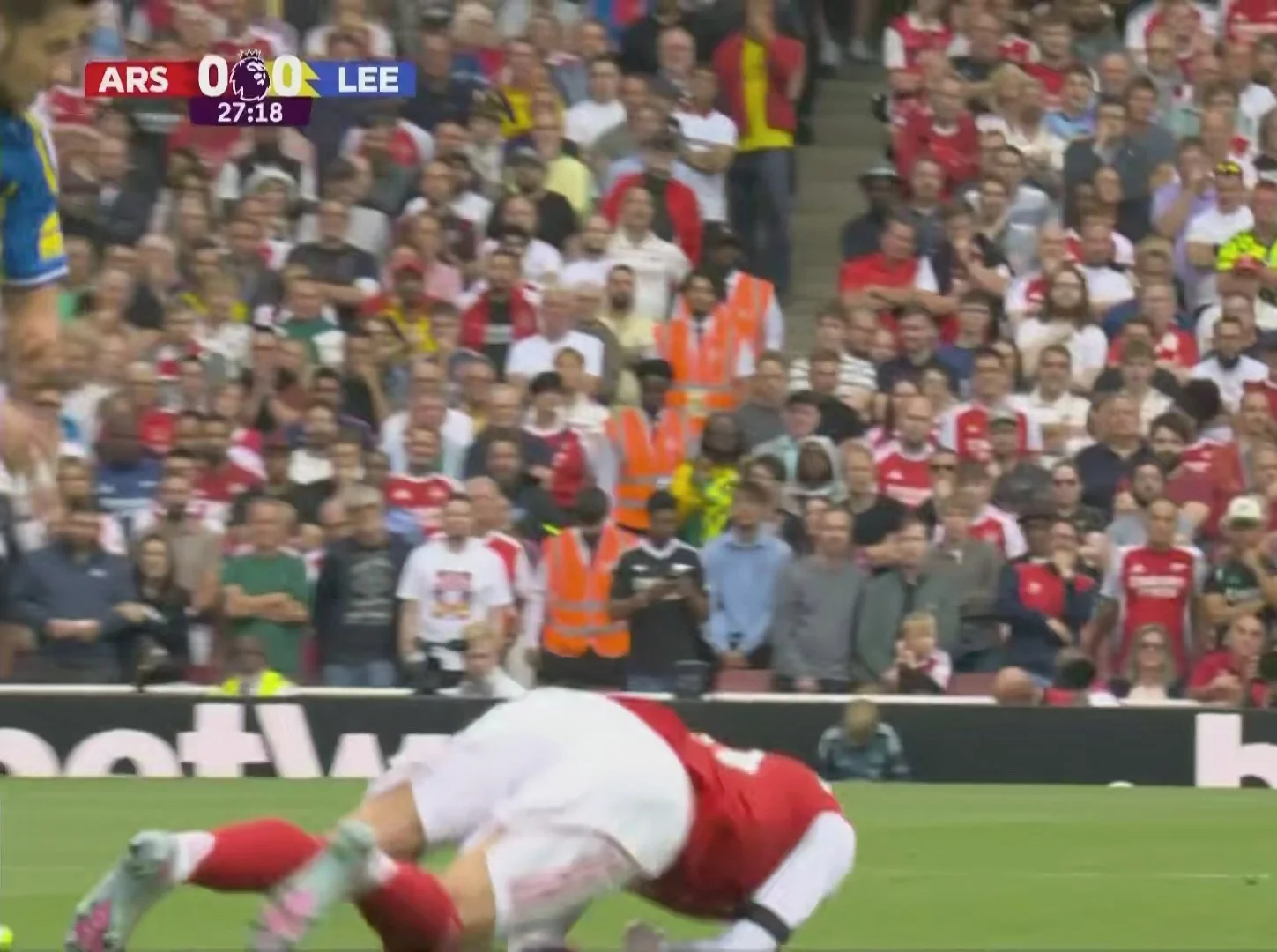 Втім, відсутність норвежця аж ніяк не допомогла Лідсу. Йоркширці нічим не загрожували, а перед перервою ще й пропустили вдруге. Райс допоміг Субіменді з відбиранням на чужій третині, після чого баск виконав пас Тімберу – Юрр'єн же запустив передачу під ривок Сака. Букайо легко відклеївся від Гудмундссона, влетів на правий край штрафного та потужно пробив над плечем Перрі. 2:0!