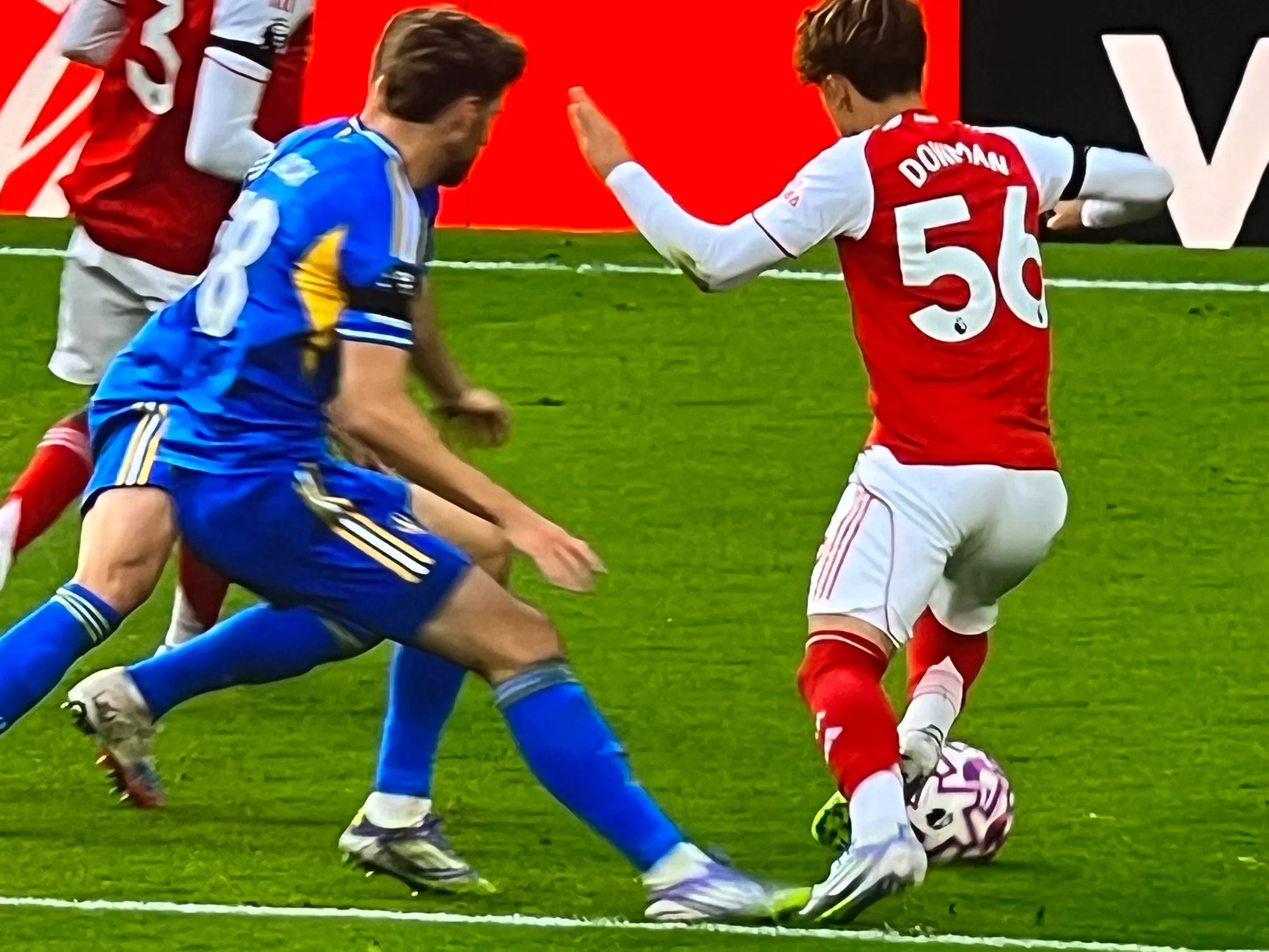 Всі питання щодо результату були зняті, тож Мікель Артета став проводити заміни. Зокрема, сталося два дебюти – фулбек Москера, який виступав Валенсію, вийшов замість Тімбера, однак публіку цікавив інший футболіст. Разом з Крістіаном з'явився і Макс Доуман, якого вважають вундеркіндом академії "канонірів".