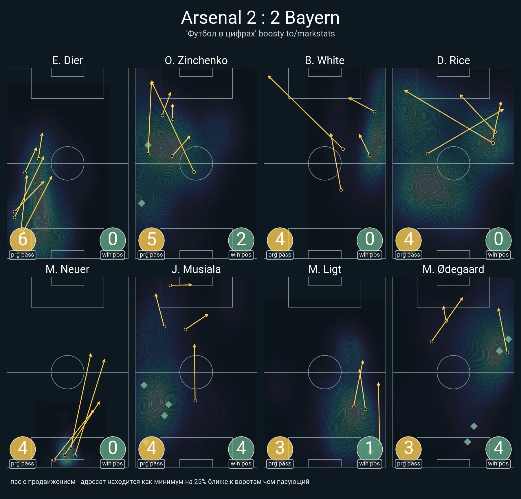 Навіть на стартовій 15-хвилинці статистика була рівною, за винятком ударів (3:0). Наприклад, за вриваннями у фінальну третину було 17:16, а за дотиками у штрафному – 3:3. Просто підопічні Мікеля Артети діяли динамічніше й інтенсивно пресингували, змушуючи Нойєра лупити по аутах. Та і при зламі середнього блоку простежувались цікаві ідеї з опусканням Едегора в глибину.