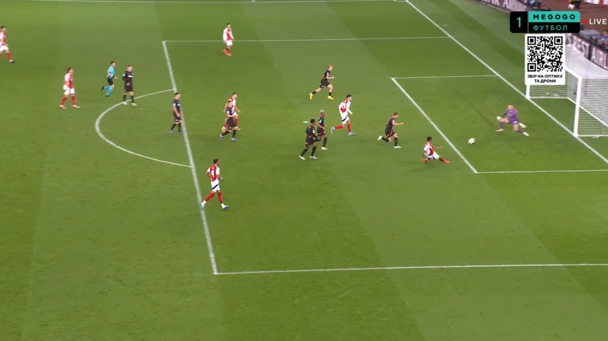 Зі стандартами теж все було сумно. В перші 10 хвилин Арсенал заробив аж три кутових. Перші два завершились програними підбираннями у межах штрафного, а третій замкнув Калафйорі – вище воріт. Здавалося, що процес розгрому ось-ось буде запущено.