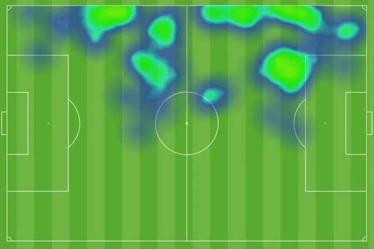 Втім, у ролі класичного фулбека, який дає ширину, Тірні працював частіше, що помітно по його тепловій карті.
