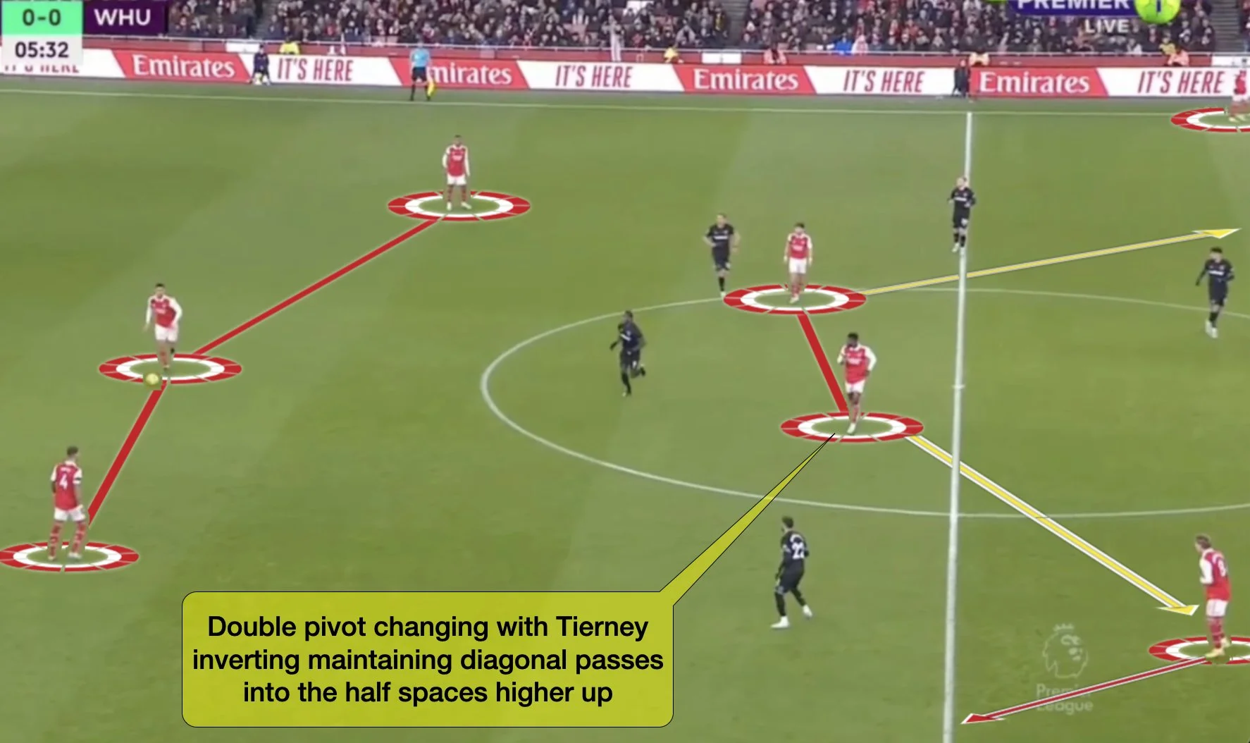 При цьому Кіран періодично виконував ті ж функції, що і Сашко. Шотландець часто відкривався у центрі, допомагаючи Парті просувати м’яч у фланги напівфланги. Це дуже допомагало прошивати пресинг Вест Хема й розвивати наступну фазу позиційної атаки.