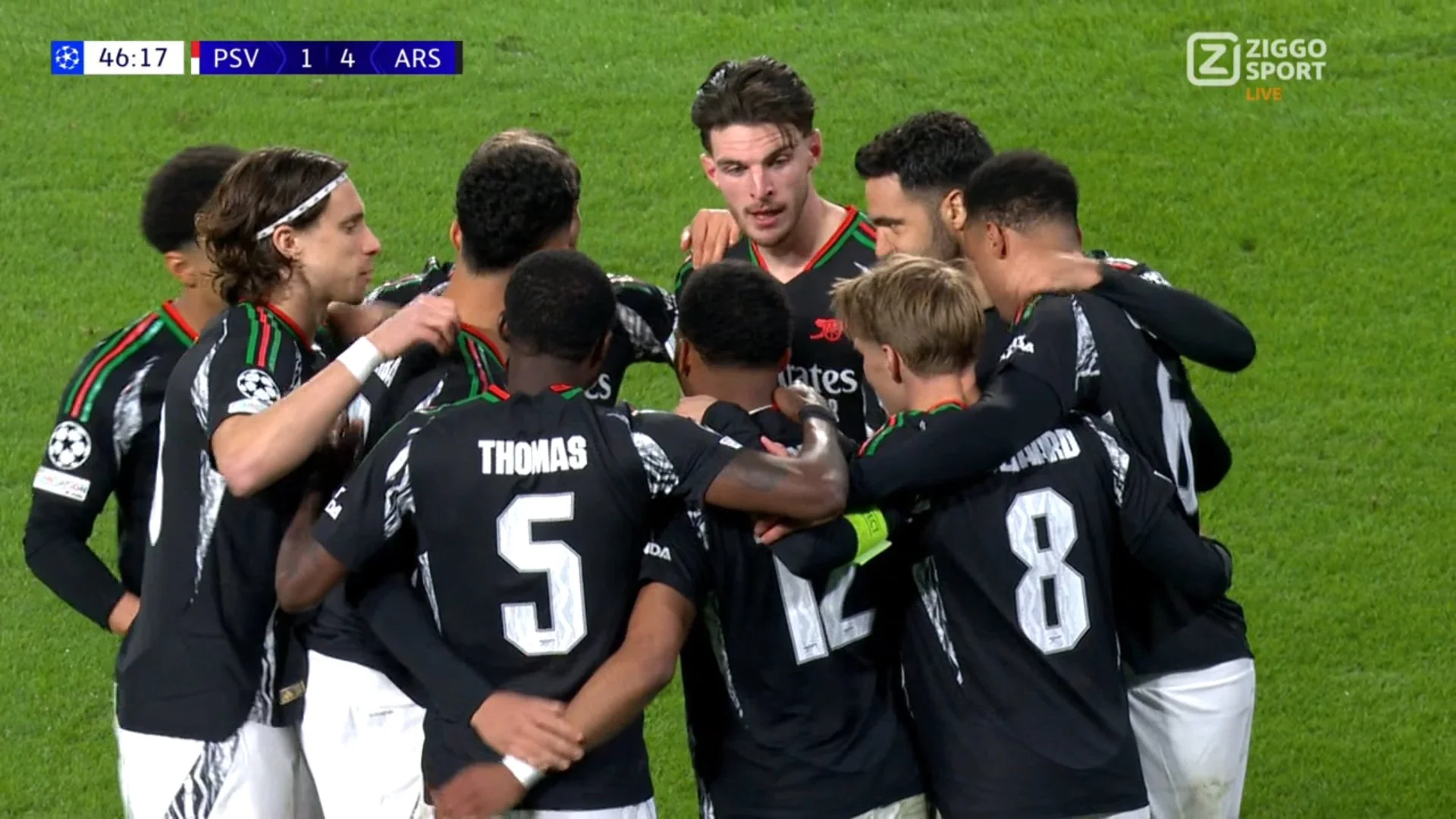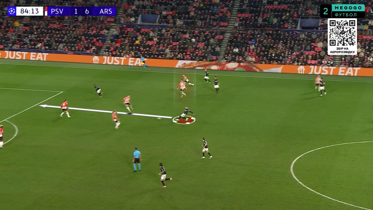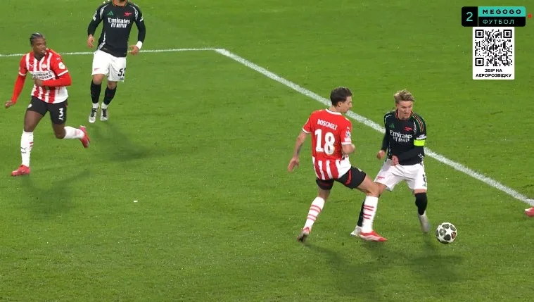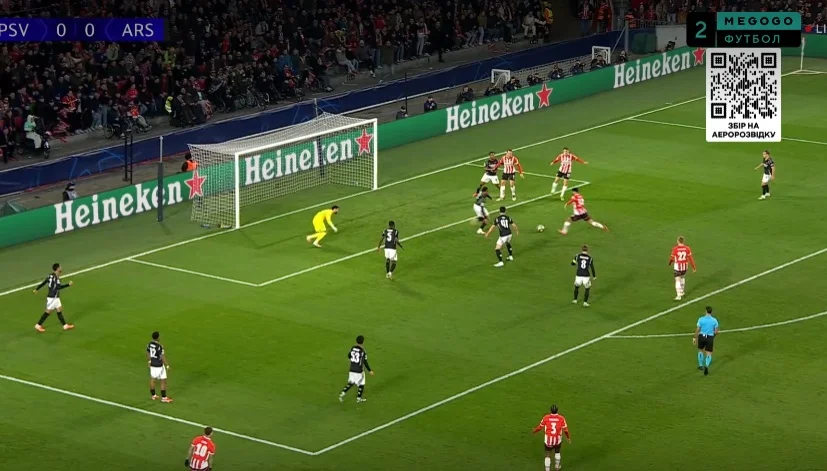 Надія на камбек у нідерландців ще жила – тут ще пам'ятали про три голи у ворота Ліверпуля на Етапі Ліги. Втім, підопічні Мікеля Артети знищили мрії фанів ПСВ вже через 63 секунди після відновлення гри. Райс зачепився за вкидання з ауту, розвернувся під тиском трьох суперників і викотив пас на хід Нванері. Ітан дав ривок і виконав простріл – Бенітес парирував перед собою, а Едегор зіграв на добиванні. 1:4.
