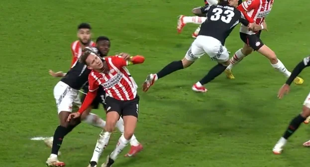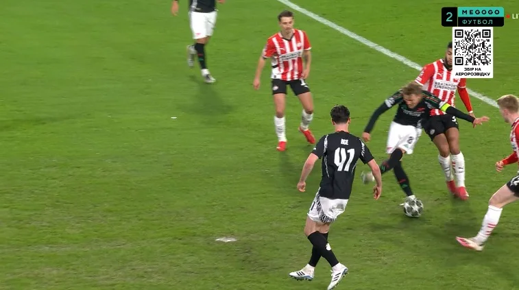 А вже на 48-й хвилині Калафйорі й Троссар вдвох порвали увесь правий фланг оборони ейндховенців. Вони зробили кілька "стіночок", завершивши вриванням на край штрафного. Рікардо покотив на ближню, а Леандро переграв голкіпера. 1:5! Усі питання щодо першого чвертьфіналіста були закриті, попри наявність матчу-відповіді.