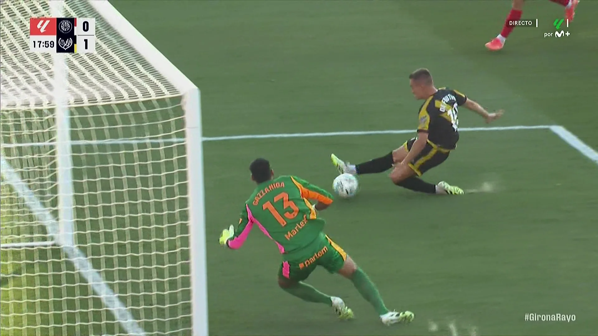 На 18-й хвилині Давід Лопес потрапив під пресинг і віддав пас назад, на голкіпера. Гассаніга ж примудрився не влучити по м'ячу, за що був покараний Де Фрутосом. 0:1!