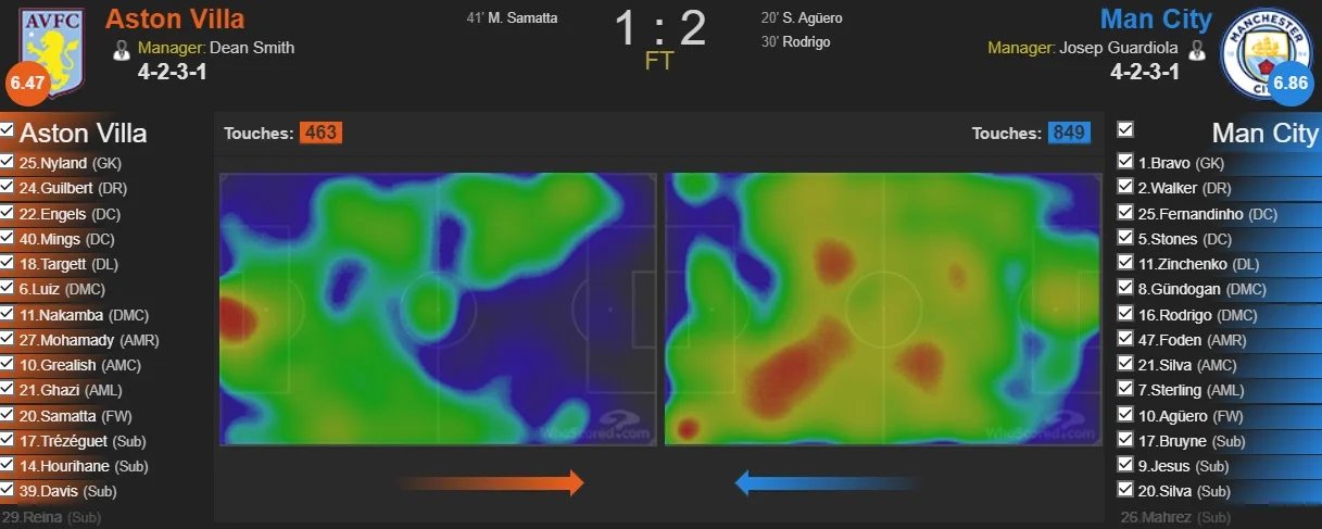 Так, не дуже справедливо критикувати команду, яка коштує приблизно як половина Де Брюйне – а тим паче, коли ця команда забиває один гол і проводить відносно сухий другий тайм. Дійсно, навіщо розкриватися раніше потрібного часу за слизького рахунку 1:2? А за тим, що без контргри гол Манчестер Сіті був лише питанням часу. Так, "віллани" непогано оборонялися, але все могло завершитись на 52-й, 75-й чи 81-й хвилині. "Містяни" йшли вперед дуже в'яло, але не зазнавали проблем на стадії організації атак і тим паче не переживали за контрвипади суперника.