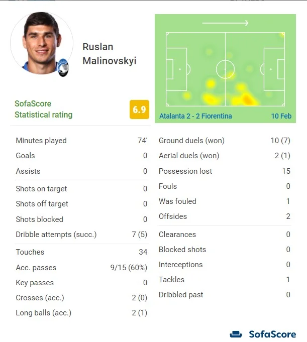 Новачок Аталанти затьмарив Маліновського. Руслан активно працював без м'яча, пресингував, перебував у постійному русі, але ефективності йому бракувало. Два проходи, неточний удар з офсайду та поперечний пас, після якого партнери створили супершанс. Він не був на перших ролях, як в неділю, а підігрував.