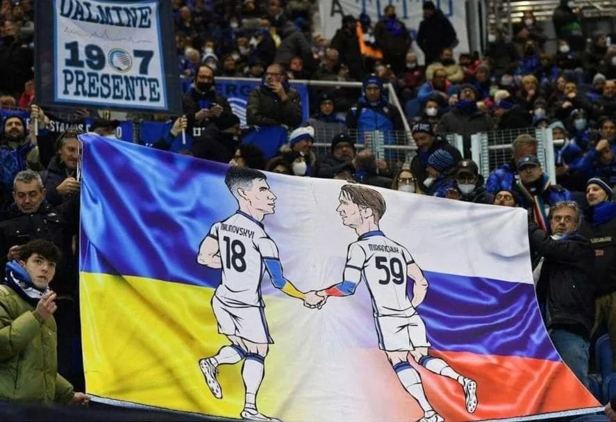 В особливому становищі опинилася Аталанта. У складі бергамасків грає найкращий футболіст України та присутній один із найбільших талантів збірної окупантів. Принаймні так говорять про Міранчука "за порєбриком". Можливо саме цим зумовлена доволі обережна, а часом відверто суперечлива позиція клубу. Ми бачимо мінімум публічної підтримки для України. Ніхто не вручав Маліновському капітанську пов'язку, хоча навіть статус новачка не завадив Миколенку вивести Евертон на поле. Аталанта не одягає жодних футболок зі згадкою про Україну на передматчеві розминки – навіть у Серії А таких команд уже далеко не одна.