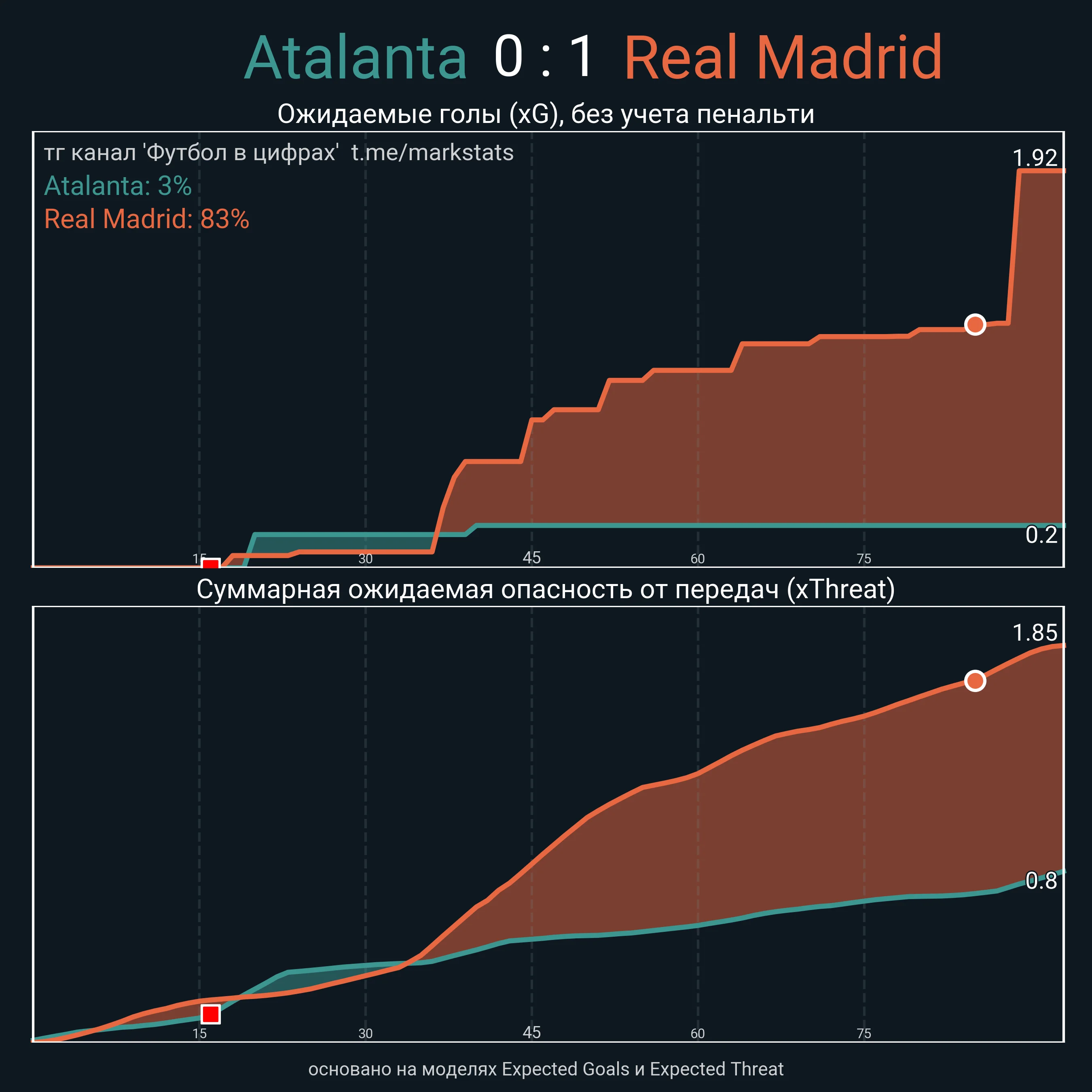 З явних пригадуються замикання Варана, удар Модріча повз ліву стійку та постріл Менді з шести метрів над поперечиною, з менш очевидних нагод – удар Вінісіуса над поперечкою з лінії штрафного (класно відкрився між захисниками) та прохід Начо (використали зброю Аталанти). Команда награла на гол у вкрай скрутних умовах.