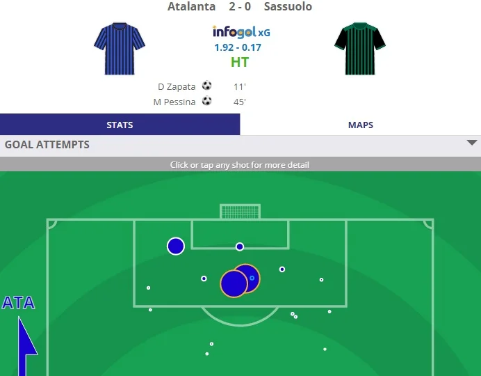 Традиції дотримано. В останні роки "Богиня" незмінно сувора з тим, кого називають її наступником. Сассуоло дістаються погроми з голом престижу. Цього разу Аталанта видала найкращу атаку (3,5 очікуваного гола за метрикою xG) та четверту найнадійнішу оборону (дозволили супернику 0,5). Лідер бомбардирів Мурієль знову забив після виходу з лави запасних (дає гол кожні 63 хвилини), а його земляк Сапата дуже багато тринькав, хоча і так примудрився оформити 2+1. Дуван виправдовує своє залізне місце на позиції №9 і голами, і результативними пасами – все, як завжди.
