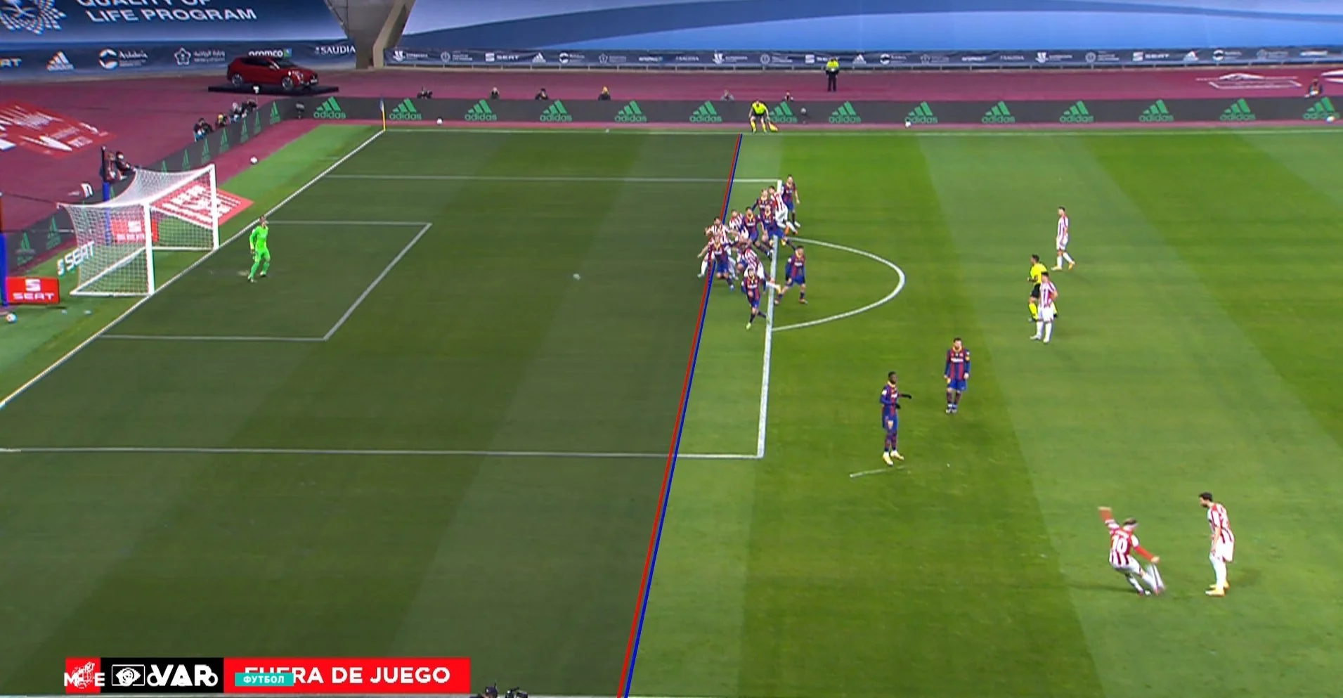 Барселона реалізувала перший свій момент, однак Атлетік відповів буквально в наступній атаці. Каталонці залишили Вільямса вільним перед штрафним майданчиком, а темношкірий баск вирізав ідеальний пас на Де Маркоса, який вистрибнув з-за спини Альби та зрівняв рахунок.