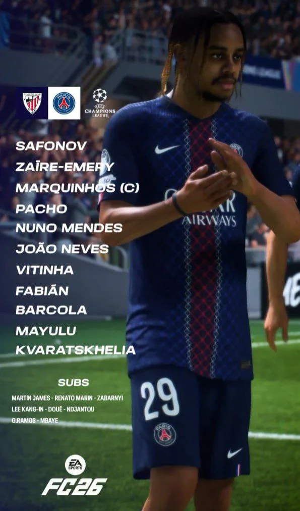 У рамках 6-го туру основного етапу Ліги чемпіонів 2025/26 ПСЖ на виїзді зіграє з Атлетіком. Стартові склади команд і посилання на онлайн-трансляцію – у цій новині "Футбол 24".