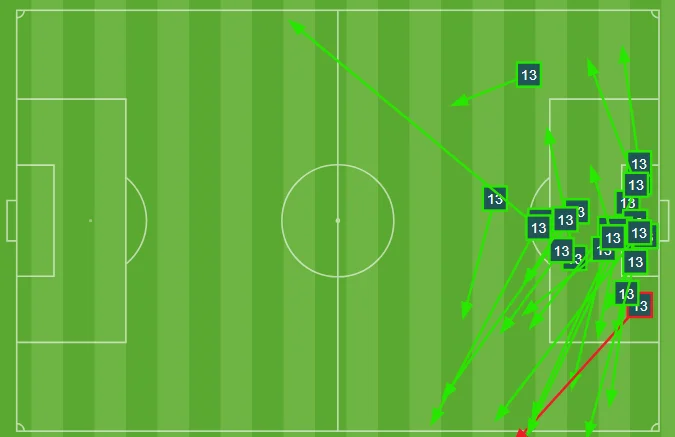 Інших влучань у площину не було, тож Лунін запам'ятався лишень кількома вдалими виходами й пристойною грою ногами. Згідно з даним Sofascore, українець віддав 31 передачу, 28 з яких були точними. 7 із 10 лонгболів Луніна знайшли адресата. Opta ж взагалі нарахувала Андрію тільки один неточний пас.