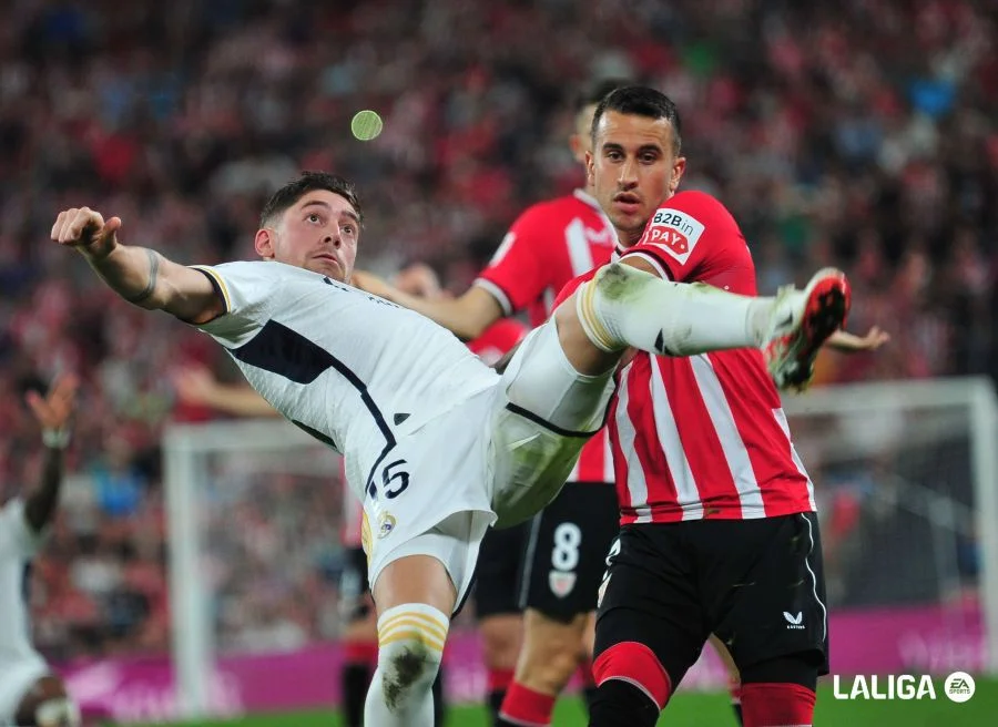 Реал підходив до виїзного матчу з Атлетіком у оновленій ігровій моделі. Замість магічного трикутника в центрі Карло Анчелотті виставив ромб із Камавінга, Вальверде, Чуамені й Беллінгемом. Модріч і Кроос залишились у запасі. Позицію лівого захисника довірили 21-річному Франу Гарсії, адже Менді травмований – хоча на банці був Начо, знайомий з цією роллю.