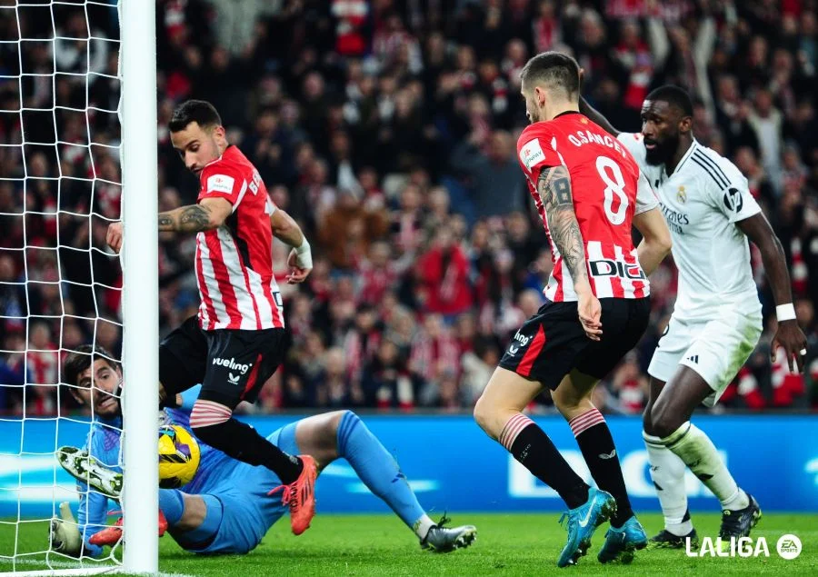 Далі на полі був жвавий футбол. Передусім завдяки господарям, які активно пресингували Реал. Щоправда, по-справжньому гострих моментів було не так і багато. До перерви ще можна згадати шанс Беренгера, який йому пасом п'ятою створив Іньякі Вільямс. Алехандро пробив трохи вище воріт.