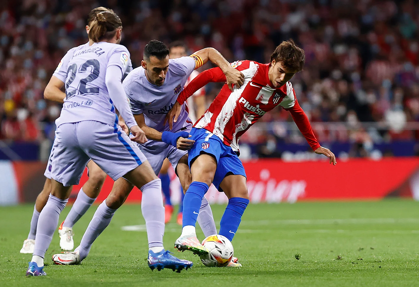Атлетіко за кілька хвилин до цього епізоду міг влаштувати розгром: Суарес отримав передачу від Феліша, увірвався на лівий фланг карного майданчика та викотив м'яч на лінію під постріл Жоау – втім, португалець пробив точно в руки голкіперу. На 72-й же хвилині ця парочка відправилась відпочивати, а замість них на поле вийшли Грізманн і Корреа. Ще через дві хвилини обидва могли "поховати" Барсу, вилетівши у контратаку 2-в-1, однак Антуан запоров її невдалим пасом на Анхеля.