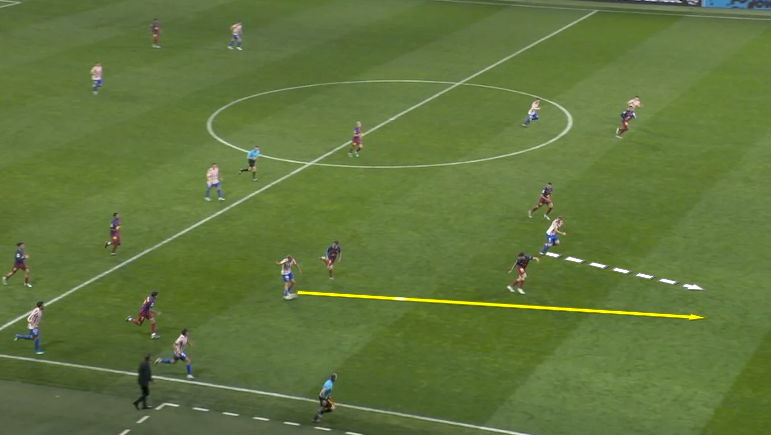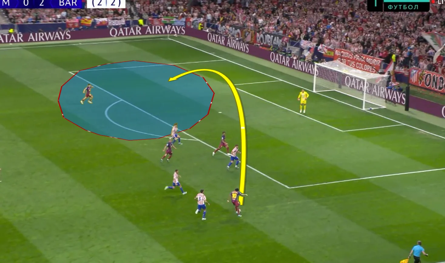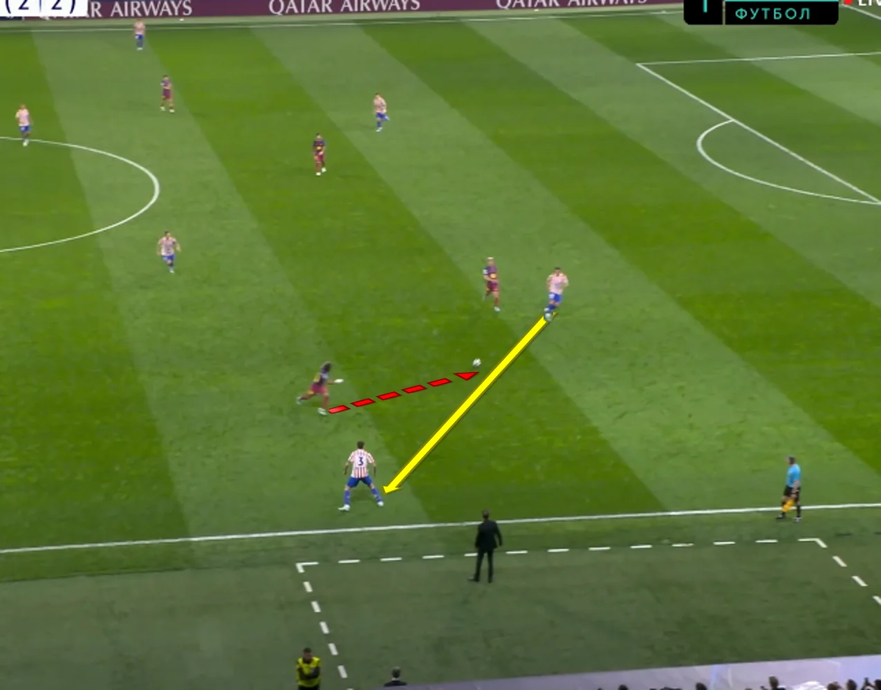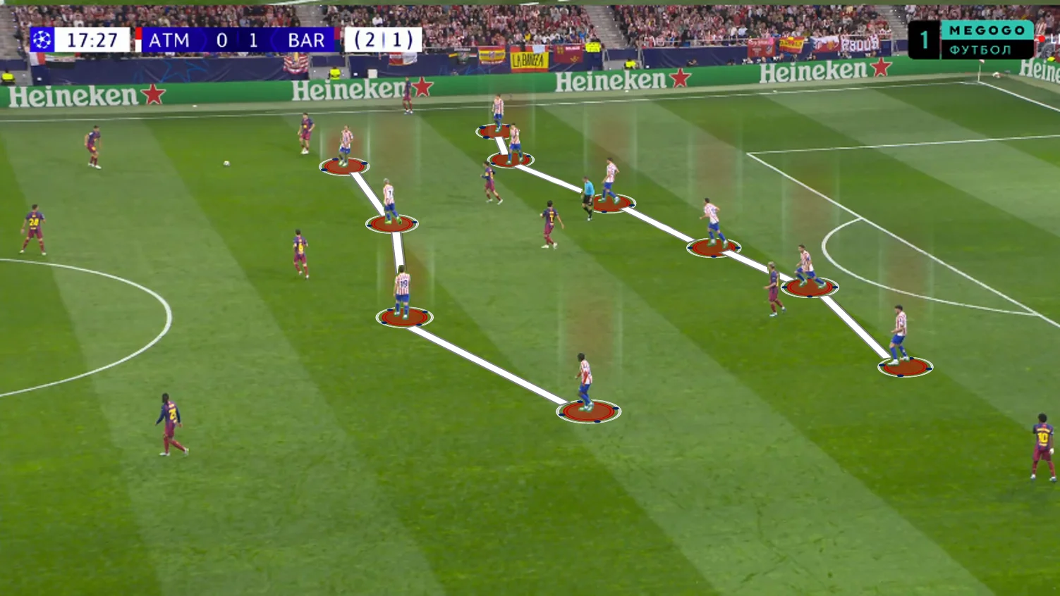 Атлетіко намагався огризатись, але вся тактика перестала працювати одразу зі стартовим свистком. "Блаугранас" завдяки надзвичайно інтенсивному пресингу задушили усі переходи з оборони в атаку. Під шаленим тиском "матрацники" припускалися великої кількості втрат, на які не встигали реагувати.