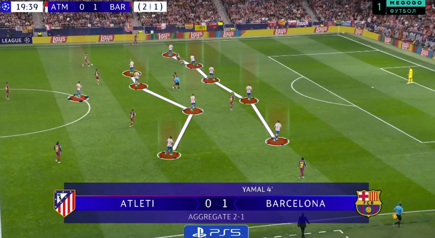 "Блаугранас" приїхали на Метрополітано без травмованого Рафіньї, а це дуже важливо – два поєдинки з Атлетіко в поточному сезоні сталися саме за його відсутності. Також на дискваліфікацію нарвався центрбек Кубарсі, тож на його позицію з опорної зони опустився Ерік Гарсія. Це відкрило шлях в основу для Гаві, внаслідок чого у центрі виникло суперінтенсивне тріо з Педрі та Ферміном.