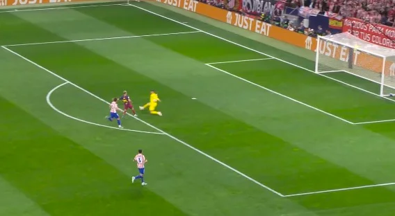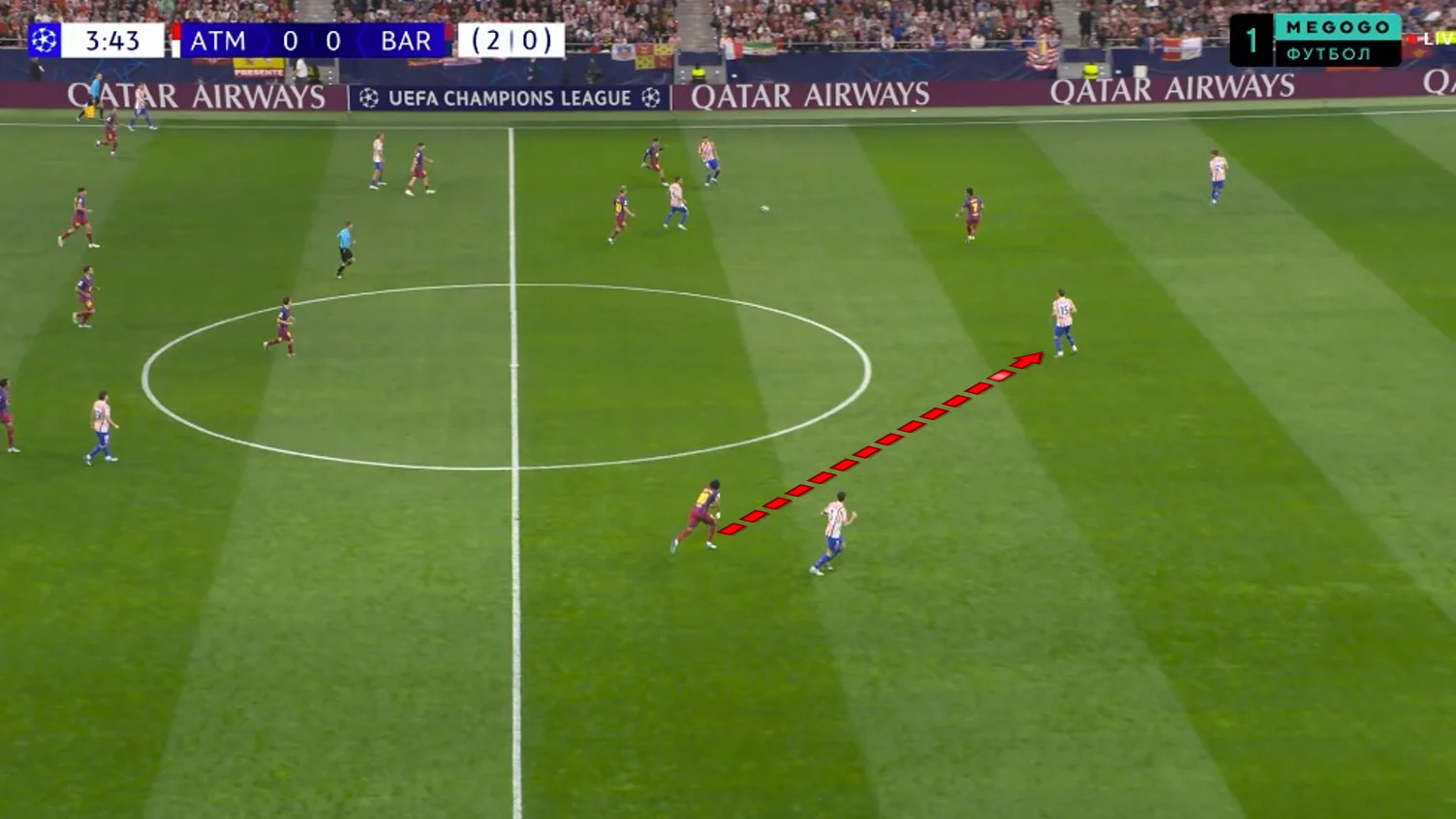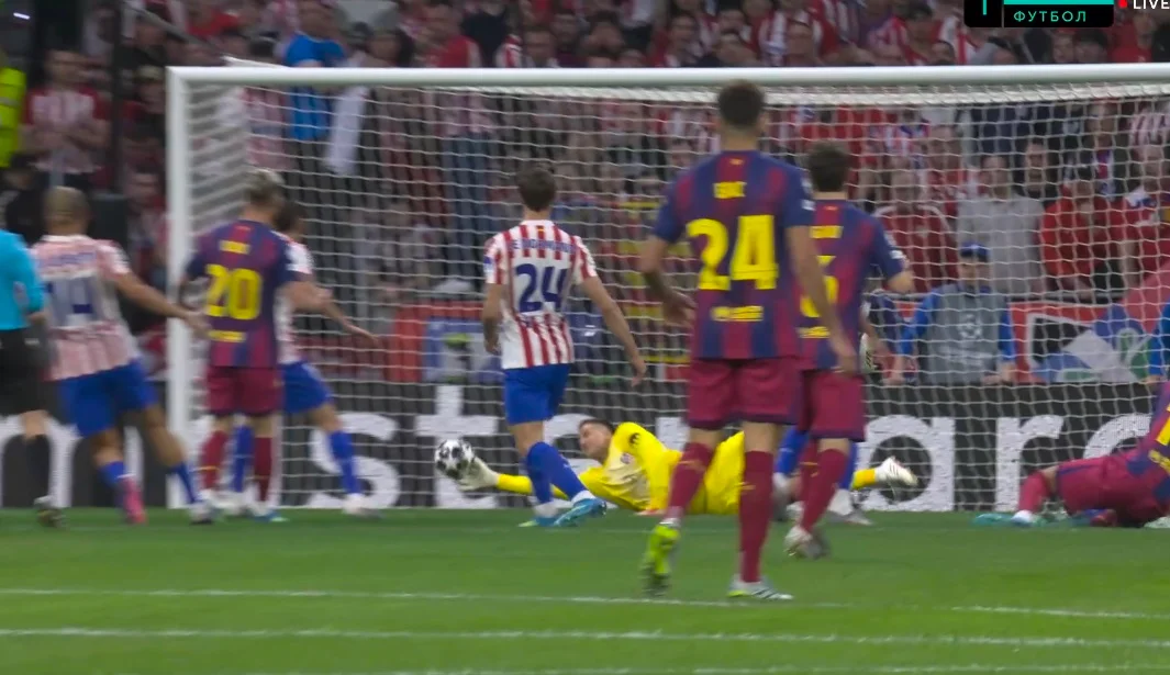 Втім, ситуація з Ферміном дозволила Атлетіко перевести дух і перезібратись. "Блаугранас" могли пропустити з першої ж хорошої атаки, що продемонстрував момент Лукмана й Грізманна на 22-й хвилині. Адемола втік лівим флангом, хитнув Кунде й прострілив на ближню – Антуан замкнув, але удар встиг накрити Мартін.