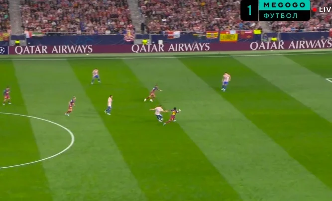 Ще за дві хвилини рахунок вже було відкрито. Порвалося там, де тонко. Мадриці не змогли вийти в атаку й розвернулися на власну половину, де м'яч отримав Лангле – екс-центрбек Барси став настільки довго думати й розвертатись, що Ямаль встиг зміститись з флангу й перехопити пас Клемана назад.