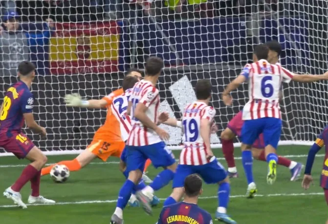Рахунок за сумою двох матчів зрівнявся, а ще через хвилину Барса могла піти на розгром. Ямаль перехопив пас Лангле й виконав красиве закидання в штрафний, куди влетів Фермін Лопес. Фермін опинився прямо перед Муссо й пробив головою, однак Хуан парирував – а заодно розбив супернику ніс.