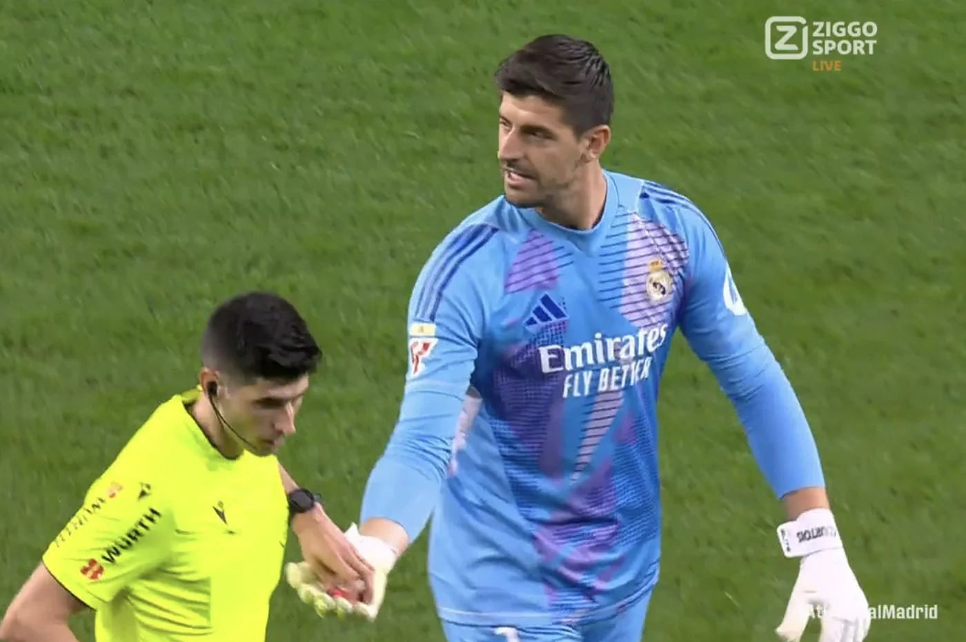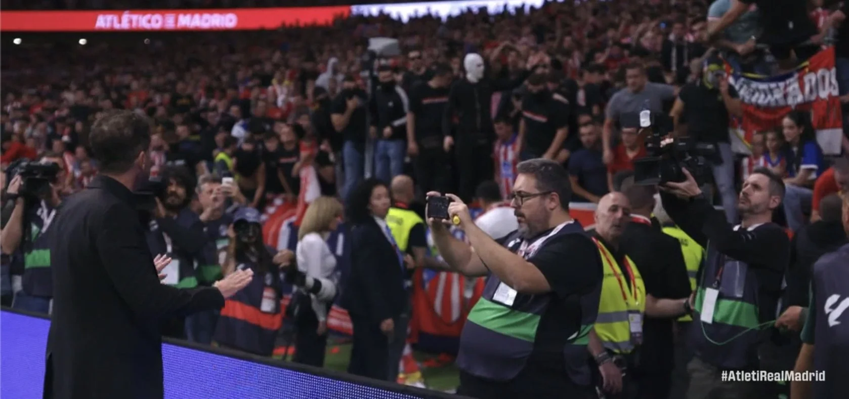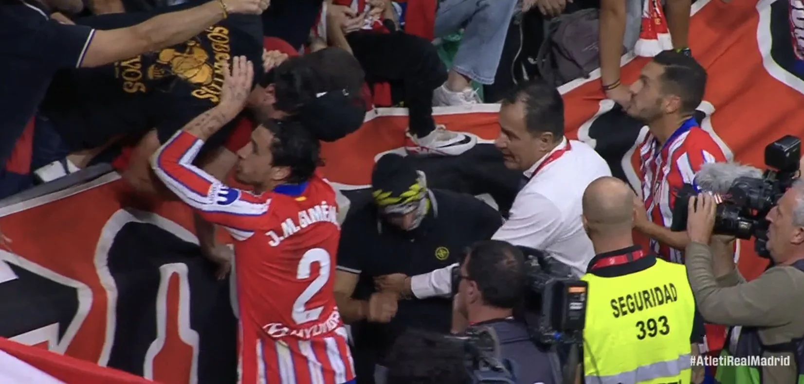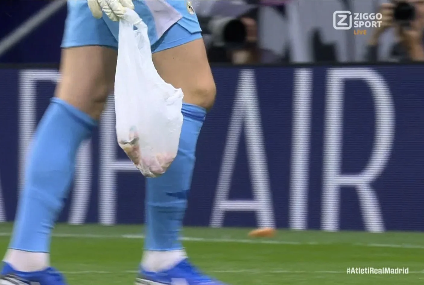 Тібо Куртуа одразу після голу щось почав виказувати трибунам, що вилилось у бомбардування запальничками й сміттям. Арбітр забрав команди з поля на 18 хвилин. Трибуни довелося заспокоювати футболістам та Дієго Сімеоне.