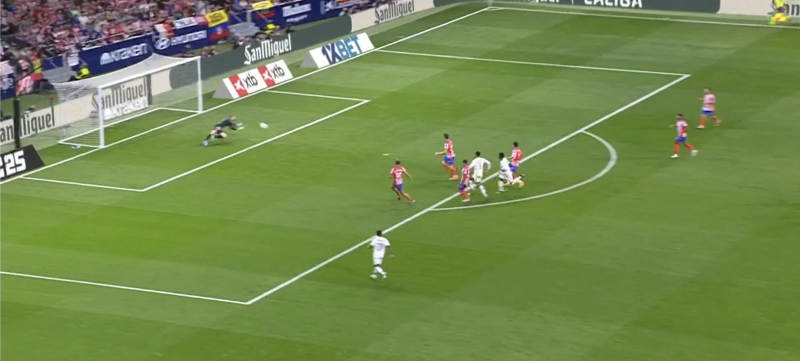 На 17-й хвилині Вальверде відкрився між лінями перед штрафним та бахнув у дальню дев'ятку, а на 36-й Вінісіус прорвався лівим флангом і несподівано викотив пас на півколо. Все завершилось ударом Джуда низом. В обох випадках "матрацників" виручив Облак.